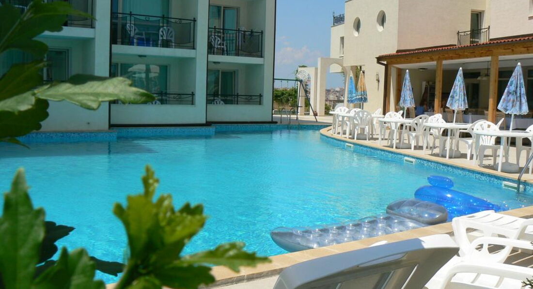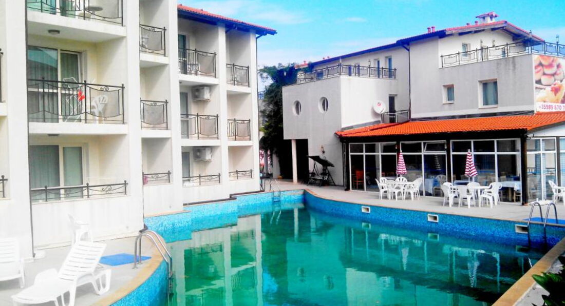 Были 12-19 сентября2016 г. Отель расположен действительно удачно: 15 мин.пешком от центра и пляж (идти лучше направо испускаться вниз)-10 мин. Номер (был 404) для 3*-просто отличный: гостинная и спальня. Бассейн хороший. Персонал (Виталий-администратор)-супер:позволил нам проживать аж до 21 часа (время вылета было в23.55). Есть особенности (очевидно с "строгим сезоном") в питании-оно было весьма и весьма посредственное, про себя отметил "хуже, чем в Черногории", где на ужин (заказ блюд накануне) приносили 1,2-е и чай (или десерт), здесь был простенький салат (ничем не заправленный) и второе ("блюдо"-сказать язык не поворачивается. Вообще от Болгарии не ждите никаких морских продуктов Испании, йогуртов Хорватии, сладостей Турции-здесь вы получите ПИЩУ....Поставил 3, а не 2 только за старание Лизы (девушка на ресепшн, она же официанти, возможно, повар) ....ОТДЫХОМ МЫ ОСТАЛИСЬ ДОВОЛЬНЫ:с погодой повезло (темп. воздуха 23-26, воды-23)...и еще раз спасибо Виталию за прием.