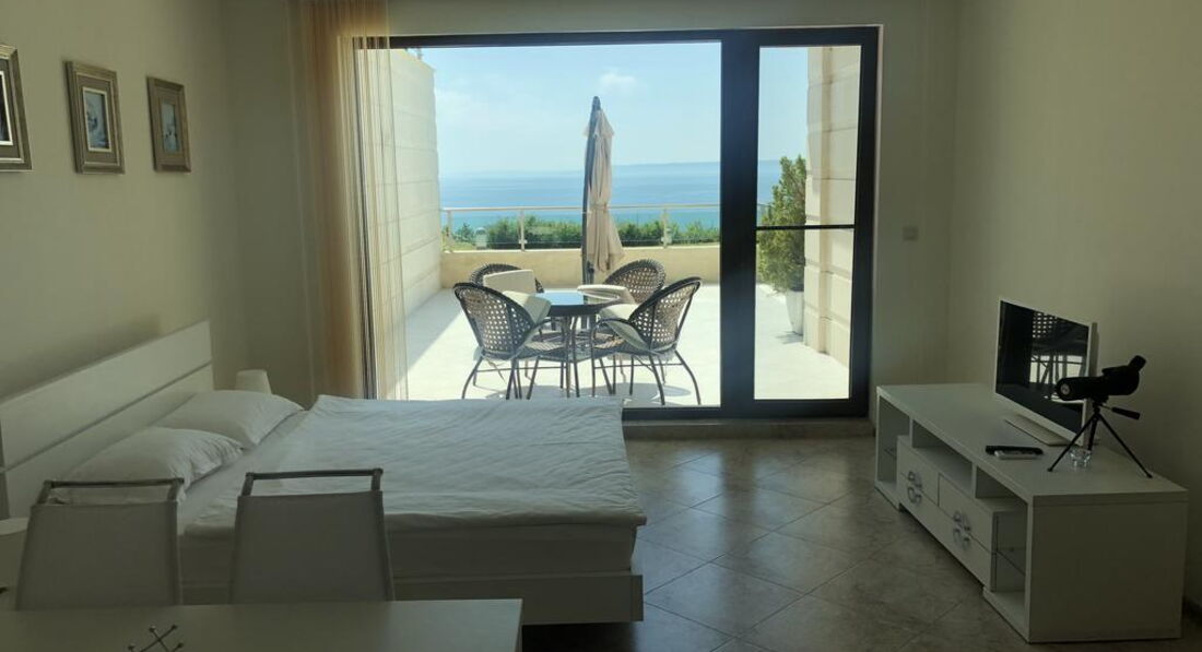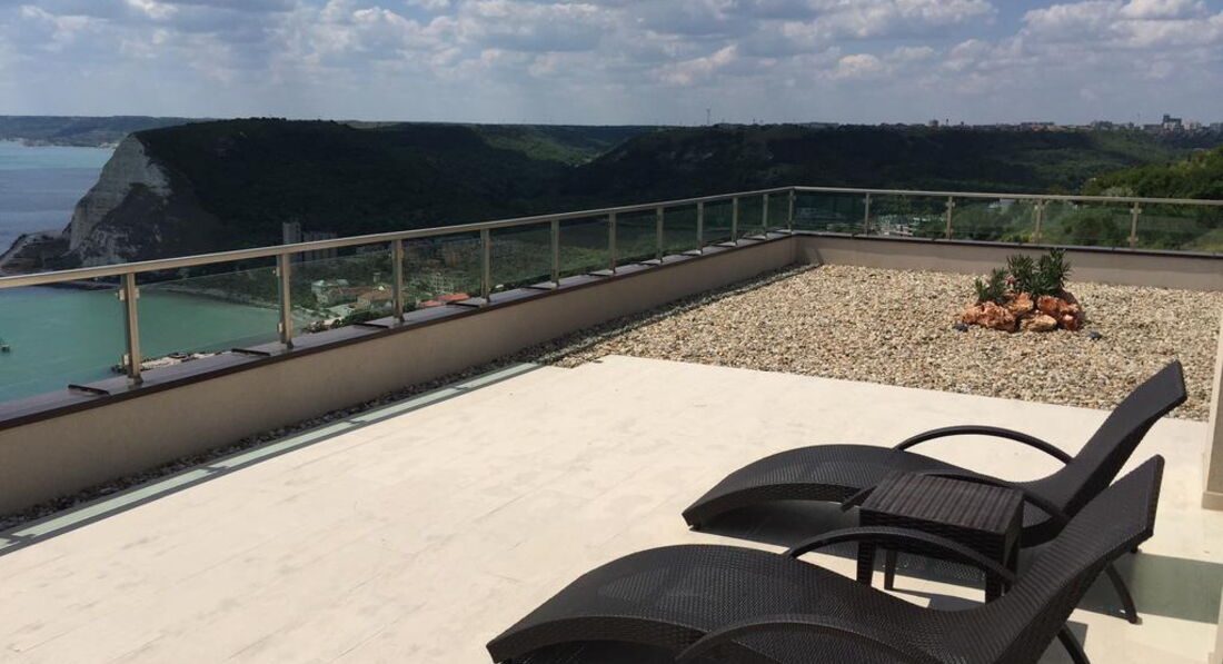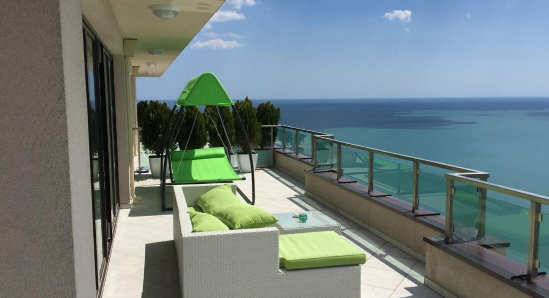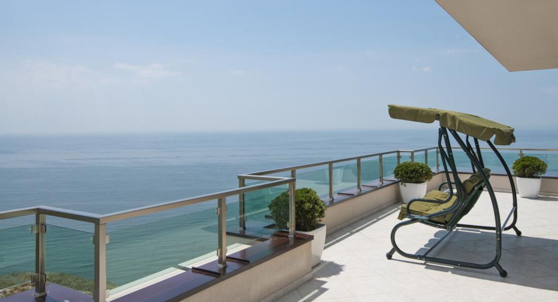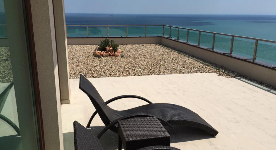 • велика мебльована тераса з видом на море