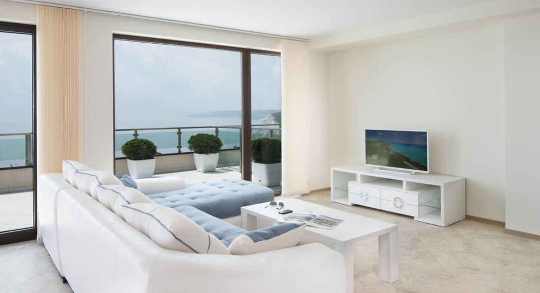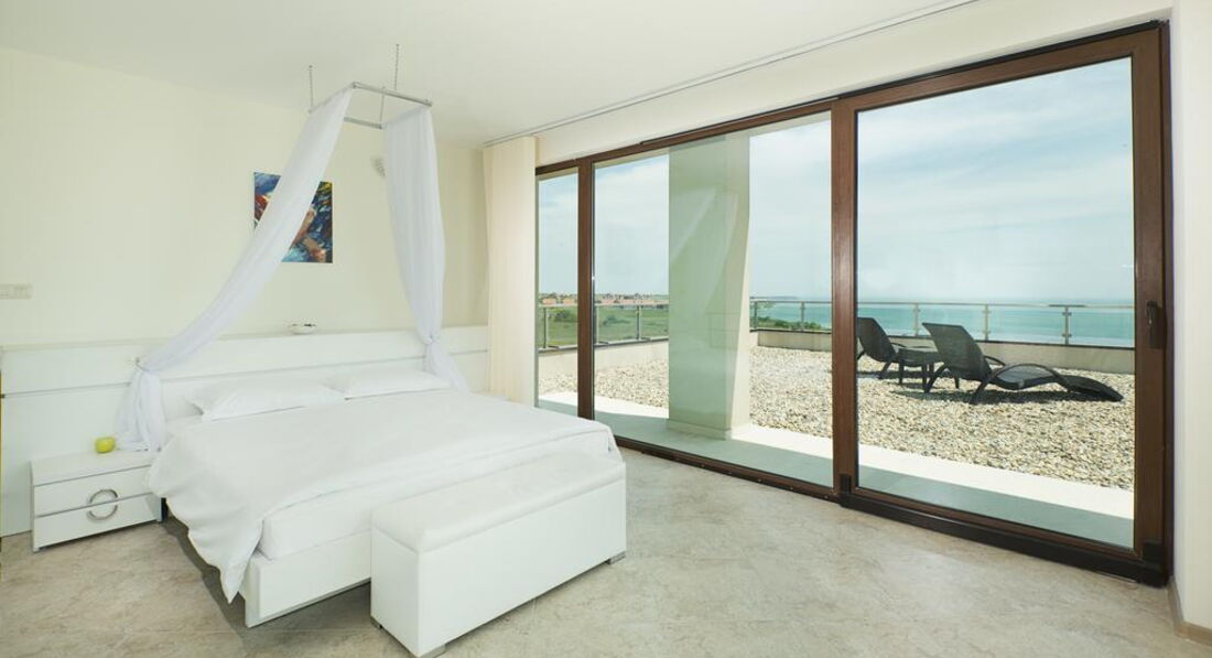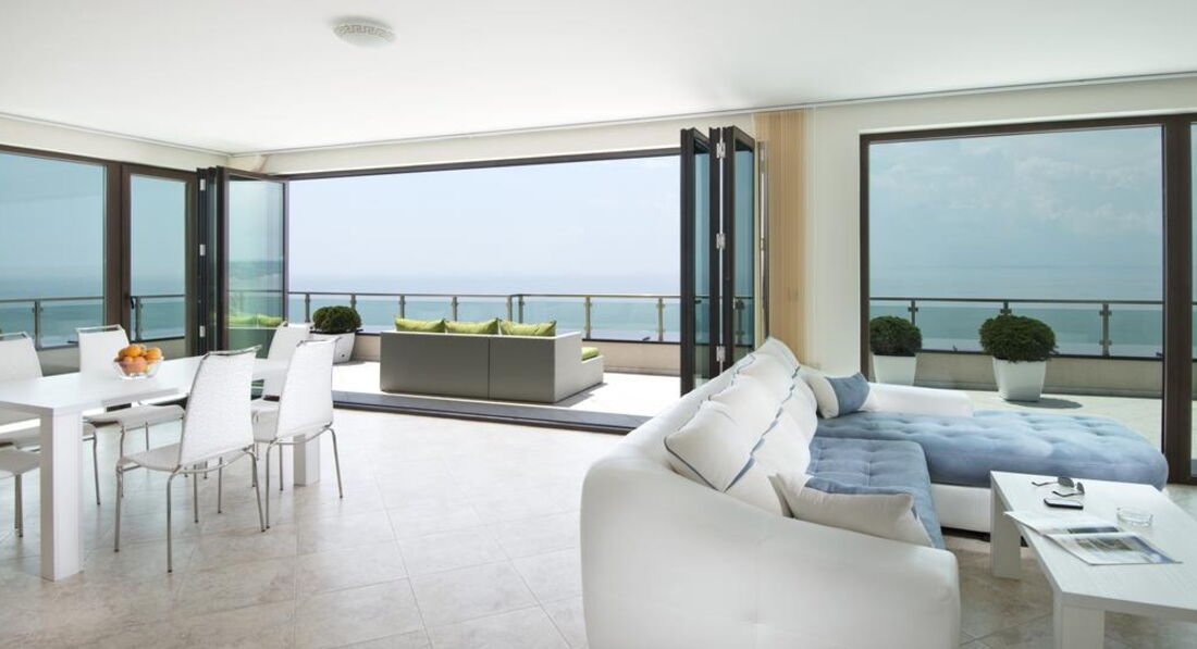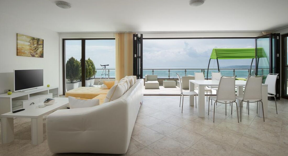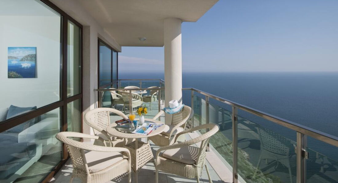 • велика мебльована тераса з видом на море