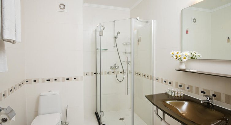 В ванной душевая кабина (как на фотках в пред. отзывах), а не дырка в полу, как читала в отзывах к многим другим отелям в Болгарии.