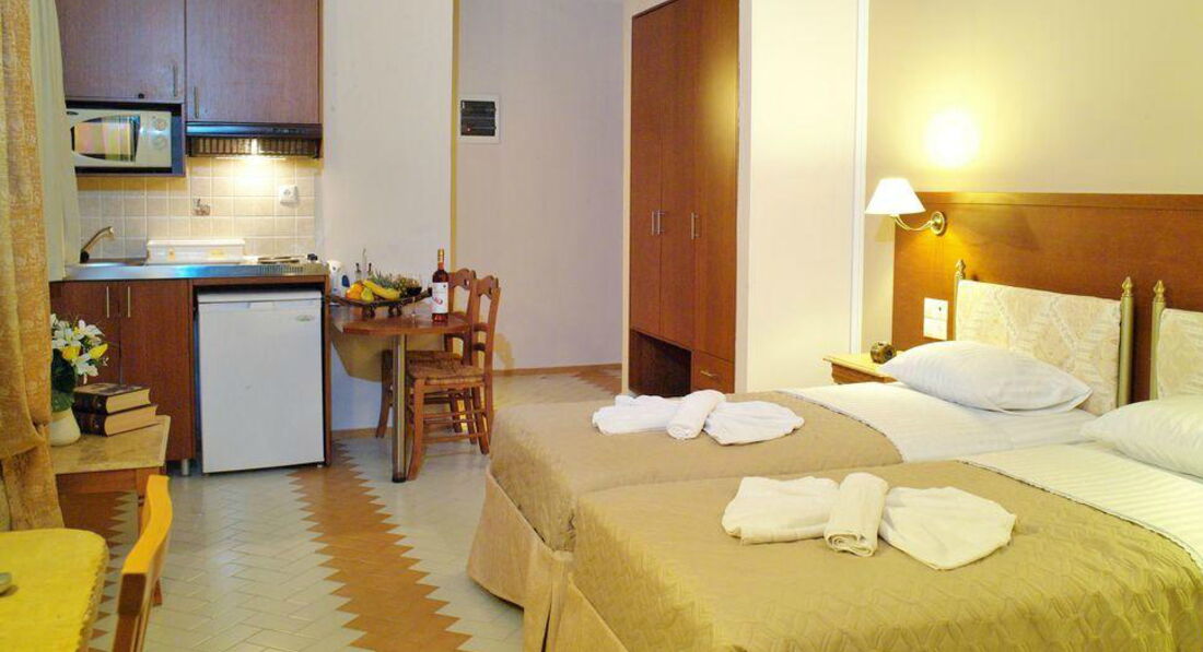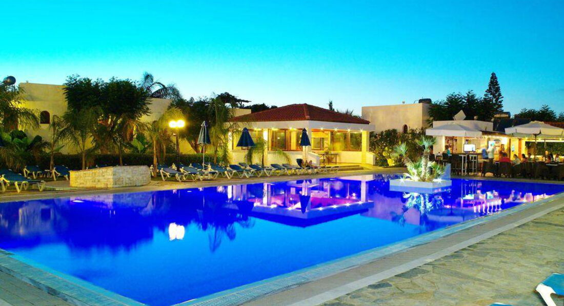 Приємний номерний фонд. Вдале поєднання спокійної атмосфери з близькістю відомого нічним життям курорту Малія. Рекомендуємо для відпочинку пар та сімей, а також самостійним мандрівникам.