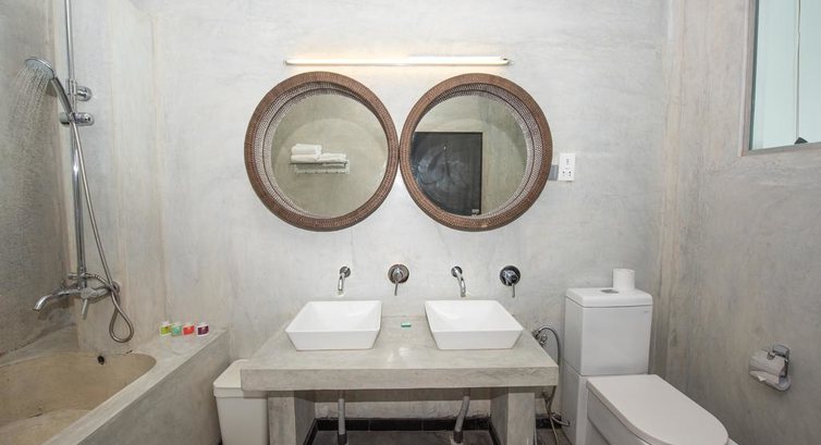 1 Aqua Chic (49 м2, макс. 3 чи 2+2 чол). Розташований на 2 поверсі, балкон, вид на океан. Спеціальна система освітлення LED, зона відпочинку, джакузі, система Bose Sound Docks, ванна кімната з ванною, двома раковинами.