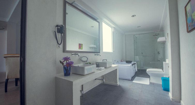 Типи номерів: • 2 Superior Room (36 кв.м., макс. 3 дор. або 2 дор. + 2 дит.) - спальня, ванна кімната, джакузі, вид на море / басейн • 5 Deluxe Room (52 кв.м., макс. 3 дор. або 2 дор. + 2 дит.) - спальня, вітальня, ванна кімната, джакузі, вид на море / басейн • 2 Suite Room (60 кв.м., макс. 3 дор. або 2 дор. + 2 дит.) - спальня, вітальня, ванна кімната, джакузі, панорамний вид на мореУ номері: • душ • халат і тапочки • фен • кондиціонер • телевізор (1 російськомовний телеканал) • DVD • Wi-fi • сейф • прасувальна дошка та праска (за запитом) • електричний чайник • міні холодильник • набір для приготування чаю/кави • питна вода (0,5 л/день) • прибирання номерів: щоденно • зміна білизни: щодня