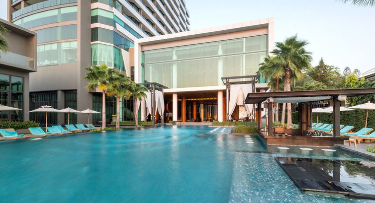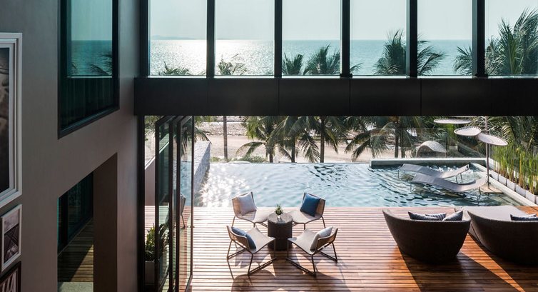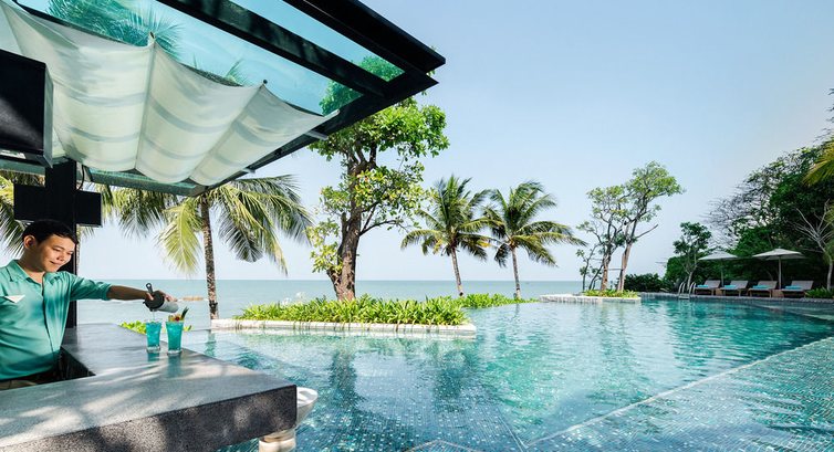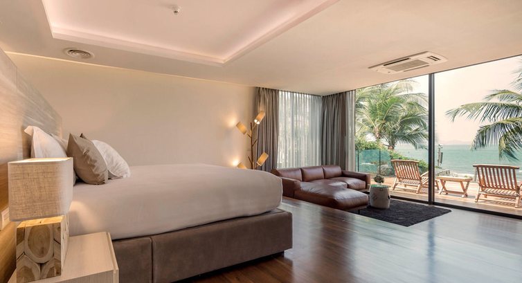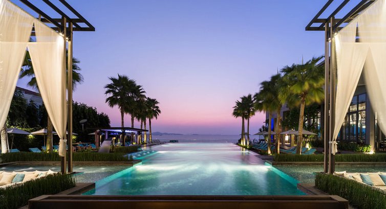 - Вообще, отель имеет очень интересное дизайнерское решение. Это своего рода релакс-отель, такая тихая гавань в шумной Паттайе. Много лаунж-зон, диванов. Очень красивый бассейн, сливающийся горизонтом с морем.