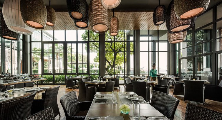 По вечерам в холе играет живая музыка, можно взять коктейли и посидеть возле бассейна.