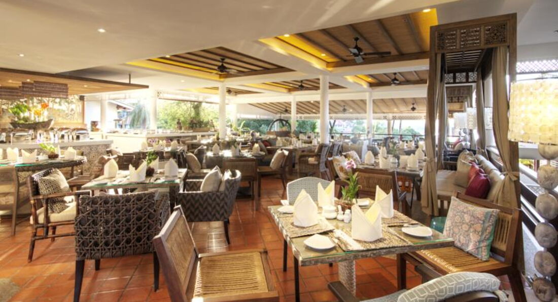 РЕСТОРАНЫ. Завтрак проходит в « Кафе Андаман». По-моему, с 7 до 11 утра . Мест много, причем на любой состав , есть даже места для очень больших компаний. Нам нравилось сидеть на диванах с кучей подушек. Частично ресторан под крышей, частично на свежем воздухе. Курящих не было. Вентиляторы с работой справлялись.