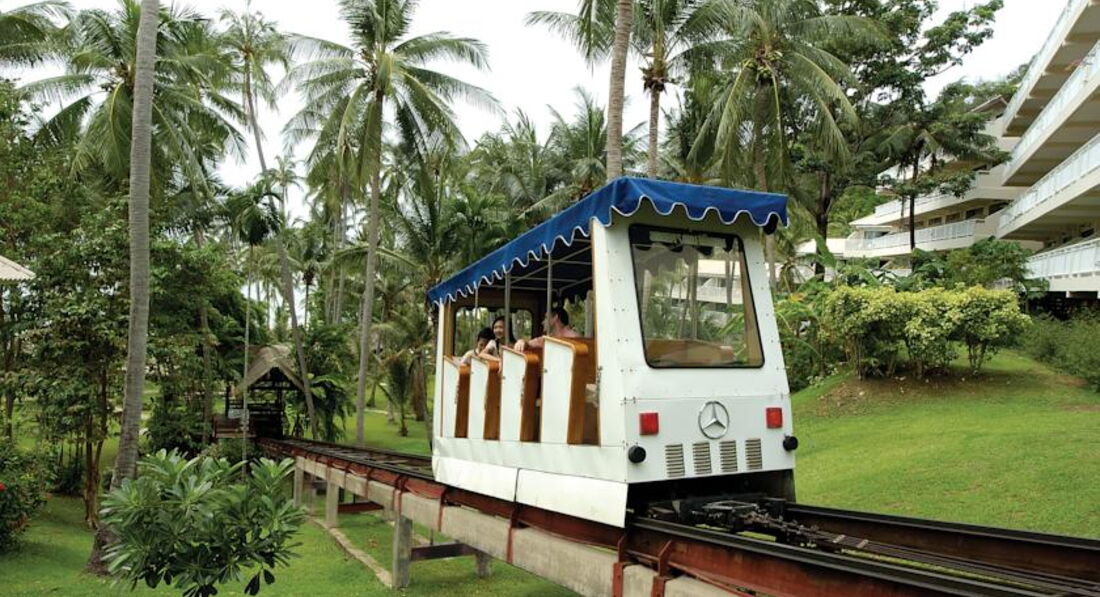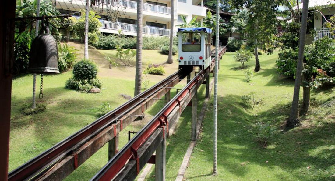 Добрый день. Мне посчастливилось отдыхать в отеле CAPE PANWA что на Пхукете в марте 2008г. Это было мое свадебное путешествие, которое я никогда не забуду. Отель очень симпатичный, выстроен в колониальном стиле, между корпусами переходы, ибо отель стоит на приличной горке. Зелени много, на пальмах живут сумасшедшие белки. Занимательное зрелище для тех, у кого номера выходят на пальмы и пляж.Действительно, для удобства туристов ходит мини трамвайчик. Причем ходит он по теньку. что очень удобно после пляжа.Из удобств отмечу бесплатный тук-тук, который каждые 10 мин спускает туристов с горы в цивилизацию.