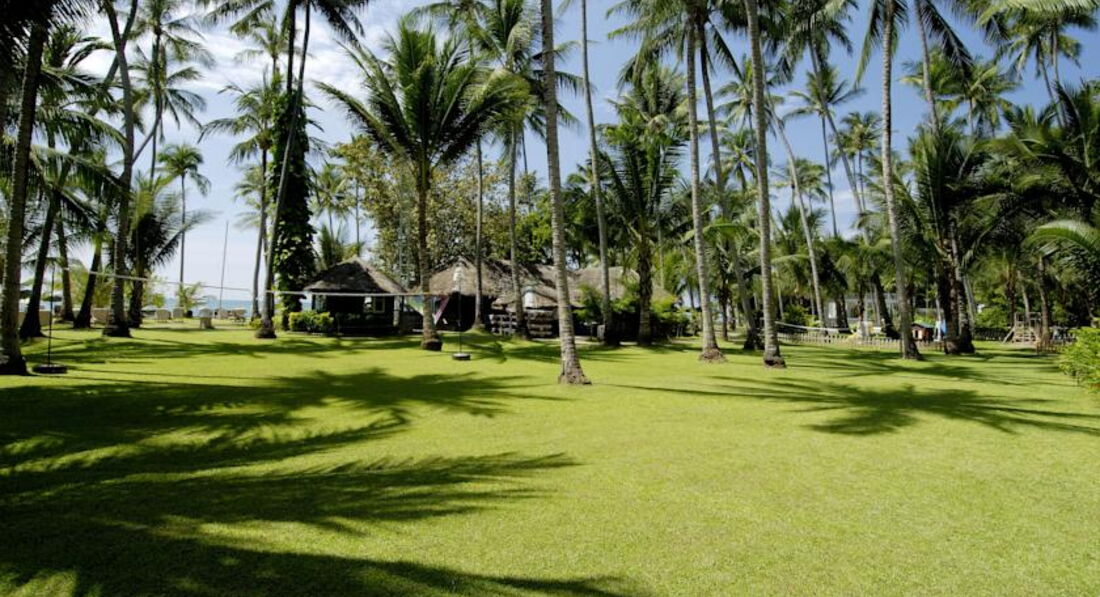 Расположен в отдалении от дорог на возвышенности в пальмовой роще на первой береговой линии. Собственный пляж с лежаками и полотенцами. Отливов, про которые все с ужасом пишут, мы не наблюдали вообще. Морское дно ни разу не оголялось. Пару дней, правда, вода достигала чуть выше колена. Наверно потому что мы ездили в самый сезон (декабрь-январь).Вода мутноватая. Если хотите бирюзовой прозрачной воды, можно поехать на Симиланы или другие пляжи Пхукета (например Сурин), что мы и делали.