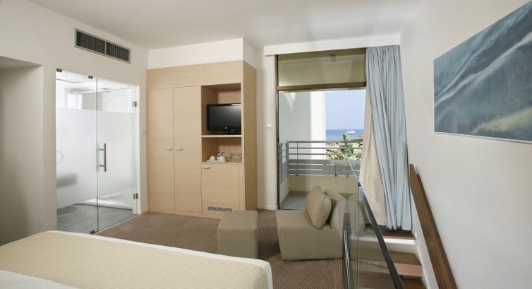 3 Junior Suite (42 м2). Перегляд з номера: на море/на басейн. Кімнати в номері: спальня із зоною вітальні. Ліжка: 1 двоспальне. Додаткове спальне місце: софа. Наповнення міні-бару: напої, шоколад, горіхи. Додаткові опції: DVD-плеєр. Кондиціонер (включено у вартість). Ванна кімната з ванною та душем "rain shower". Окремий вбиральня. Wi-Fi. Чайні/кавові приладдя.