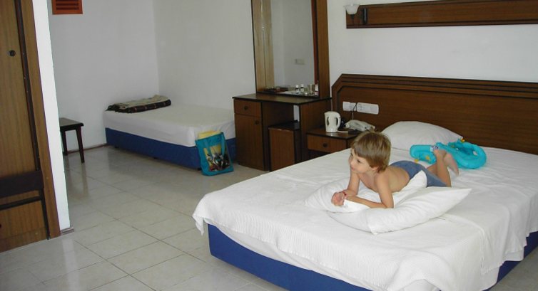 Здравствуйте все, кто решает куда поехать. Мы отдыхали в этом отеле с 28.06. по 10.07.2011 двое взрослых и двое детей. Приехали рано, в 8 утра, на ресепшене предложили позавтракать и поплавать возле бассейна. Заселили около 12 часов на 4 уровне в сем.номер, без денег. Кто-то писал тут, что семейные номера на 7-8 уровнях, не правда, они есть везде, но стараются заселить ниже. Номер приличный двухкомнатный, чистый, убирали каждый день, мы оставляли шоколадки порционные Аленка, турки любят наш шоколад.