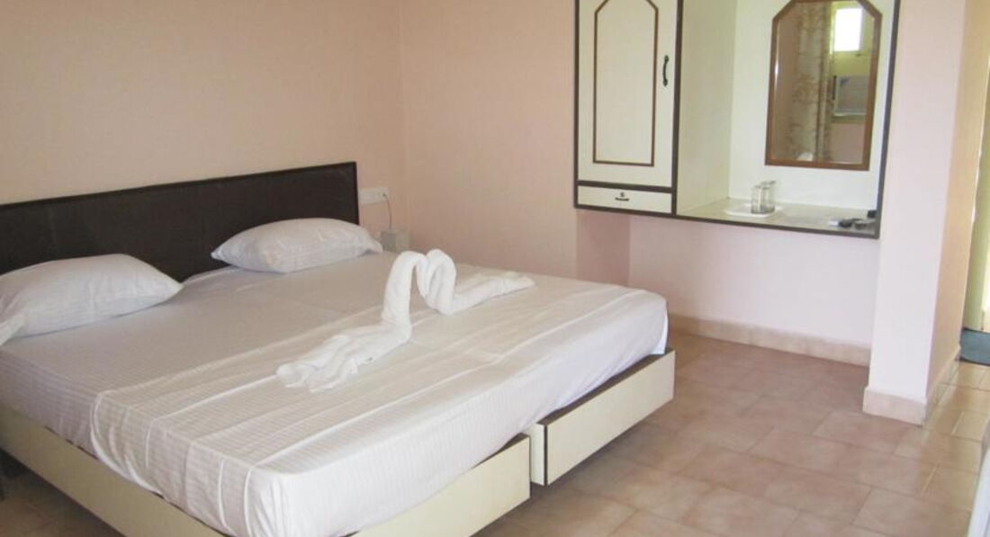 Отель чистенький, территория ухоженная. На ресепшене нас встретила Джойс с улыбкой на лице, говорит она только на английском языке. Нам сразу выдали ключи и мы разместились в своём теперь уже любимом номере 120 Делюкс (на троих человек). В номере все замечательно : 3 кровати, про которые кто то пишет что слишком твёрдые, нам они показались самыми чудесными!!! В номере есть душ и туалет совмещённые, есть зеркало, телевизор, который на отдыхе нам совсем не пригодился. Есть сейф (ключ нам выдала Джойс, за 10 дней 400 рупий, 1 рупий =1 рублю, 1$=65 рупий). Ещё на ресепшене можно в первы день, но курс там не очень... Лучше минимум поменять на еду и воду(~ 300 руп еда и 65 руп вода бутилированная, она продаётся всюду). Самое выгодное дойти до обменника, это налево от отеля и прямо никуда не сворачивая по тротуару мимо всех палаток с одеждой, едой на перекрёстке увидите обменник, там курс 1$=66 руп, мы уезжали курс был 1$=65 руп. Здесь же наискосок от обменника есть аптека, кондитерская и супермаркет.