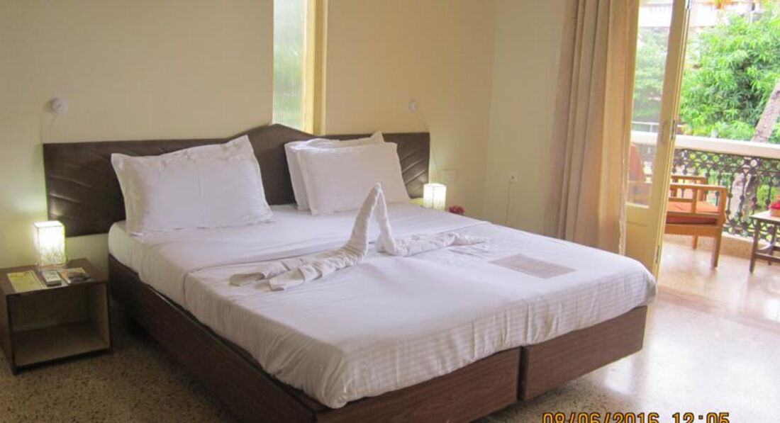 Добрый день. В данное время нахожусь в этом отеле. Очень переживали, когда ехали в этот отель. Все таки 2 звезды. Но оказалось совсем не плохо. Очень симпатичный отельчик. С большой территорией. Номер бронировали стандарт с кондиционером. В отель приехали часов в 10. Ключ от номера дали сразу и ждать нам не пришлось. Но когда мы зашли в номер, мы просто обалдели. Это был какой то ужас:-) На первом этаже. Очень темно. В номере кроме кровати и какого то полу шкафа больше ничего нет. Кондиционер допотопный. Когда нам его включили, говорить было не возможно, не то что спать:-) спросили сколько стоит телевизор и холодильник. 500 рупий в сутки. Короче говоря пошли мы на ресепшен менять номер стандарт на номер делюкс. Стоимость доплаты составляет те же 500 рупий. Мы попросили дисконт и менеджер отеля сделал скидку. Мы заплатили по 300 рупий за каждые сутки. Номер отличный! На втором этаже с видом на бассейн. В номере кровать, плазма, холодильник, шкаф. На балконе кресла и журнальный столик. В ванной комнате все тоже очень прилично. Короче говоря номер нужно брать только делюкс! Теперь завтраки. Действительно все очень медленно:-) Мы в первый день остались на завтрак чтобы посмотреть. В последующие дни сразу уходили на пляж и завтракали в шейке. На завтрак в отеле дают маленький стаканчик сока, три кусочка поджареного хлеба, масло, джем и кофе или чай. Кофе вкусный с молоком. Пляж замечательный. Белый песок. Коров нет. Приставучих индусов тоже. Мы выбрали шейк Валония. Хозяин шейка молодой парень. Его зовут Гуру. Отлично говорит по русски. Очень внимательный и добрый парень. Море чудное! Волны почти не ощущаются. Мы здесь четвертый день, поэтому кроме пляжа больше ничего не посещали. Особо ходить тут не куда. Только кафе и пляж:-) Пару раз кушали в кафе Малибу. Нормально и не дорого. Как выходишь из отеля налево минут 5 пешком. На пляже не много дороже. В заключении хочу сказать, если собираетесь на ГОА то выбирайте юг, а не север. Приятного отдыха.