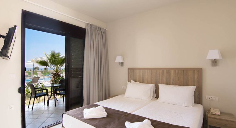 Готель розташований за кілька хвилин ходьби від моря, на незайманій ділянці землі, звідки відкривається захоплюючий вид на гірський хребет Лефка Орі. Підійде до спокійного сімейного відпочинку.