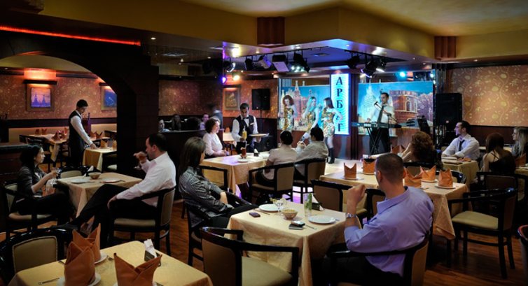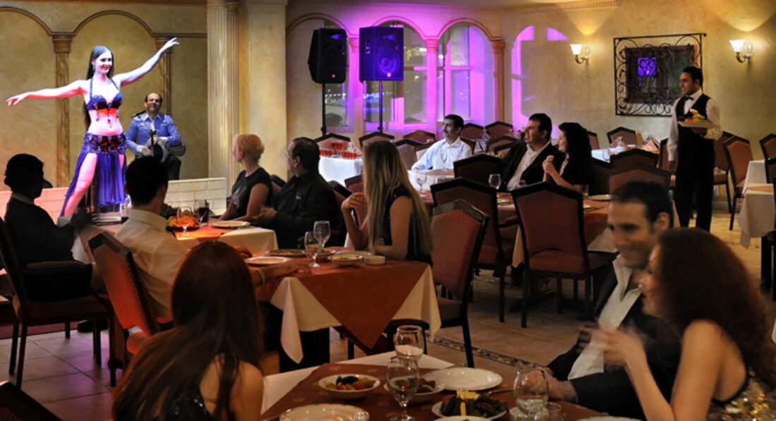 • Ресторани a la carte/шведський стіл La Marquerite (Міжнародна кухня) з 19:00-23:00; Arbat (Російська кухня), з 19:00-03:00; Butterfly (Арабська кухня), з 19:00-03:00. У ресторанах потрібна попередня резервація.