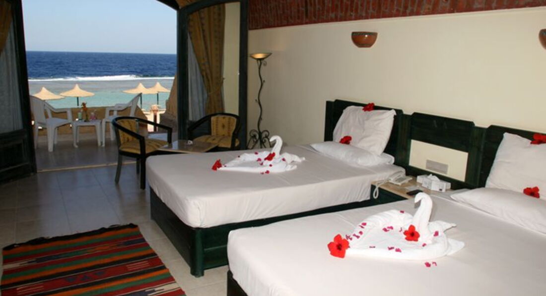 В целом- номера большие, убирают нормально, территория большая, но не очень зеленая, мало поливают. Пляж оборудован, но купаться реально негде- до моря метров 300 кораллы, а потом глубина, так вот мы ни разу до глубины не дошли, т.к. там штормит! Справа, м. в 400 есть понтон, отличные рифы, возможность наплаваться с маской! Анимация для всех, из трех человек, очень стараются, особенно Миша и Леша, у них строгий начальник под названием НИНО показывает "страшилки-шоу" с огнем и стеклами! Во время отдыха у нас сложилась отличная компания, нам было так весело и хорошо отдыхать, что мы не замечали нюансов. Если вам нужен не арабский сервис - это не сюда, а на Мальту, а кому нужен тихий отдых в пустыне с минимумом услуг и спокойной атмосферой, ну и дайверам - вам в Карнелию!