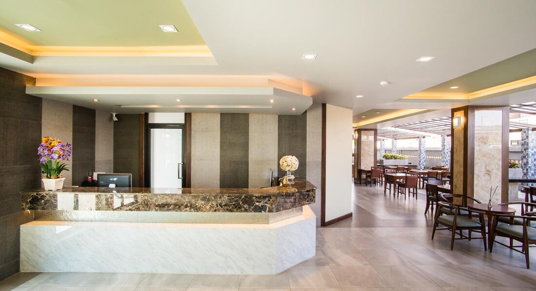 Територія та послуги: • басейн (23 x 6м, 8:00-20:00) • ресторан • ліфт • Wi-Fi у лобі (безкоштовно) • пральня Для дітей: • басейн (13 x 4м, 8:00-20:00) • дитяче ліжечко Живлення: • BB (сніданок – фіксоване меню) Пляж: Громадський піщаний пляж. Пляжні рушники – безкоштовно.