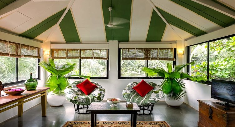 Оригинальный бутик-отель, дизайн в стиле охотничьего домика, расположен в спокойном месте, до центра Анжуны идти около 20 мин., рядом с отелем есть несколько лотков с продуктами. В качестве дополнительной кровати в номерах (при размещении троих человек) кладется матрас на пол.