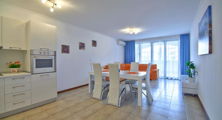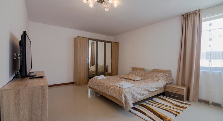 6 Тwo bedrooms apartment - 2 спальні (двоспальне ліжко в одній з них, 2 односпальні ліжка - у другій), суміжні двері, вітальня з розкладним диваном, обладнаний кухонний блок (обідній стіл, холодильник, духовка та мікрохвильова піч, плита, витяжка, чайник , Посуд: сковороди, каструлі, тарілки, чашки), ванна кімната з душем, макс 6 чол., 150 м2.