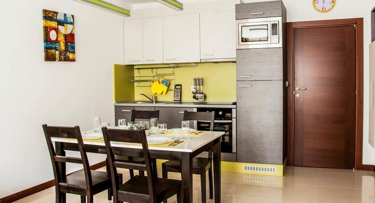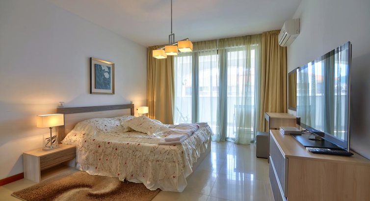 5 Three Bedroom Apartment – 3 спальні з двоспальними ліжками, суміжні двері, вітальня з розкладним диваном, обладнаний кухонний блок (обідній стіл, холодильник, духовка або мікрохвильова піч, плита, витяжка, чайник, посуд: сковороди, каструлі, тарілки, чашки) ванна кімната з душем, макс 8 чол., 240 м2.
