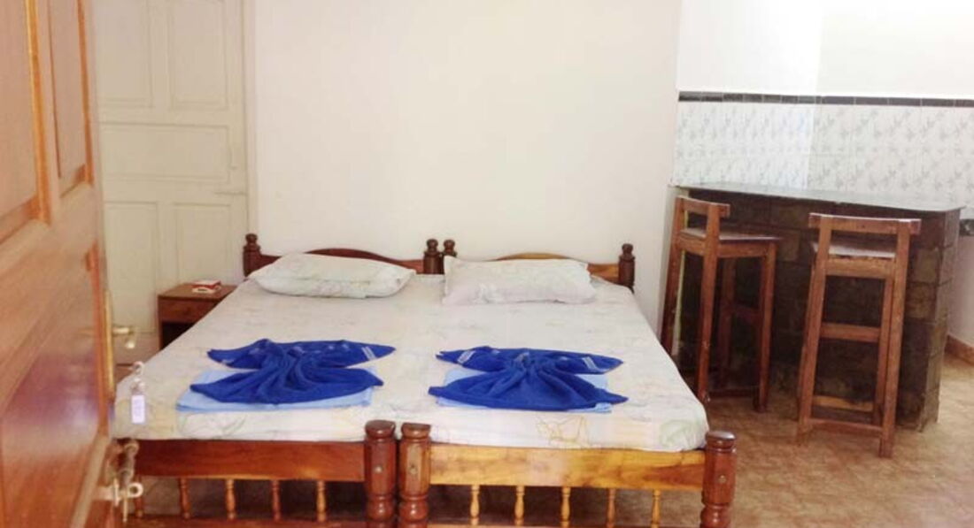 Я находилась в самом маленько номере с5 так как отдыхала одна. Номер закрывается на дешевый китайский замочек (фото к отзыву прилагается). Сначало это пугало, но на территории никого лишнего. Если вы ходите на завтраки, то вы всех будете знать. Поэтому краж в отеле не наблюдалось. В номере отсутствует кондиционер. Но присутствует винтелятор, его в полне достаточно. Так же в номере есть холодильник, что конечно очень помогает при самостоятельном питании. Вместо шкафа какое-то не понятное железное сооружение (комод?) Мне в принципе хватало. Тумбочка, прикроватный столик, откидной недостол, пластиковый стул и большая скрипучая кровать (любое движение на кровати- это целая симфония скрипов). В туалете нет туалетной бумаги. Стоит ведро с черпаком для двух целей: подмывания после туалета по вероисповеданию и для спуска воды ночью не стандартным способом (через сливной бочек), а с помощью черпака , дабы не создавать лишних шумов. Слышимость в отеле невероятная. Я слышала когда соседи ругались, мерились, обсуждали будующие планы, делали детей и конечно же все походы в туалет и душ. Белье на кровати было чистое новое полный комплект, вместо одеяла была положена простыня ( плоток???) Или вообще не понятно что, черное со слонами ( на фото видно. Могу сказать что я подмерзала. Полотенце выдали одно, хорошее мохровое, незатрепаное, но пахло псиной поэтому им не воспользовалась.