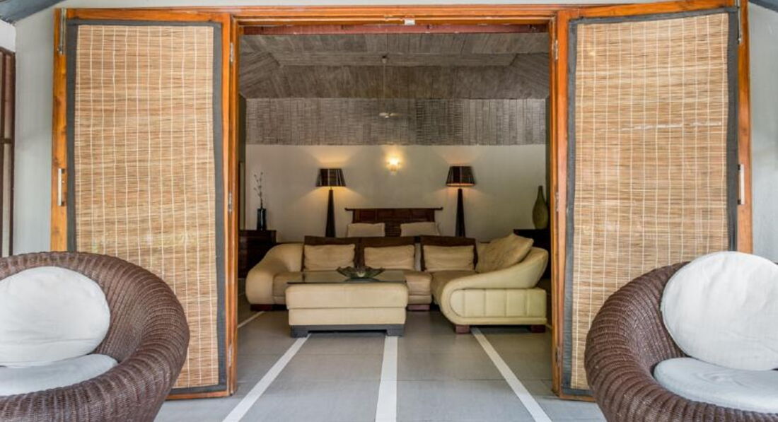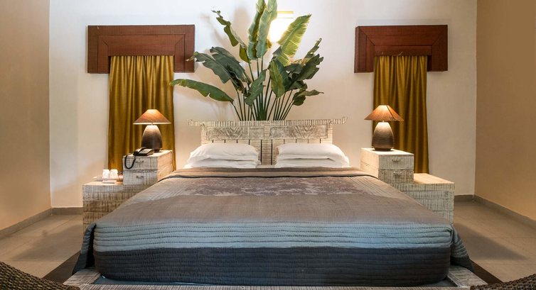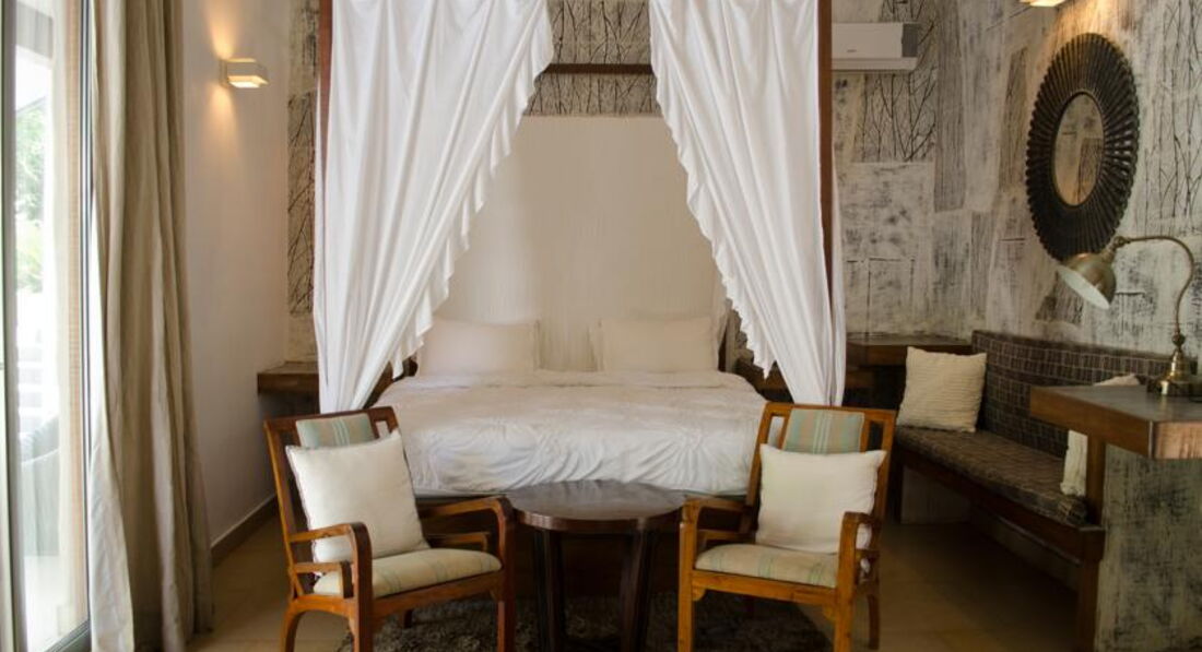 Бутик-отель расположен на возвышенности. Территория очень зеленая и ухоженная. Номеров не много и каждый отличается от предыдущего. Все номера с одной большой кроватью и собственной террасой с уютными креслами. Дополнительная кровать в номере – это матрас на пол. Именно в этом отеле лучшая площадка для занятий йогой.