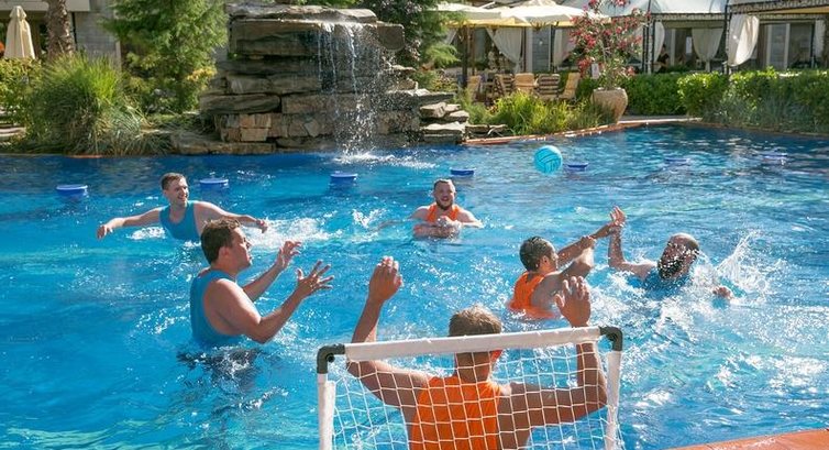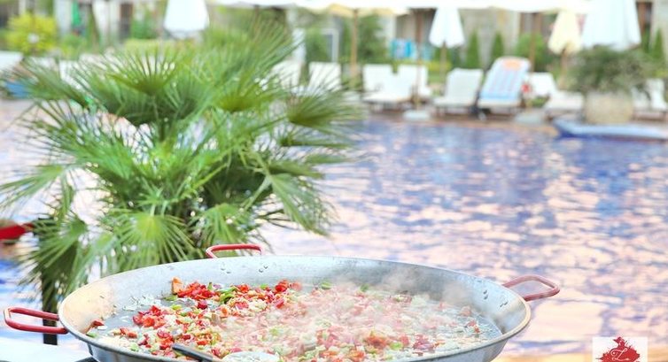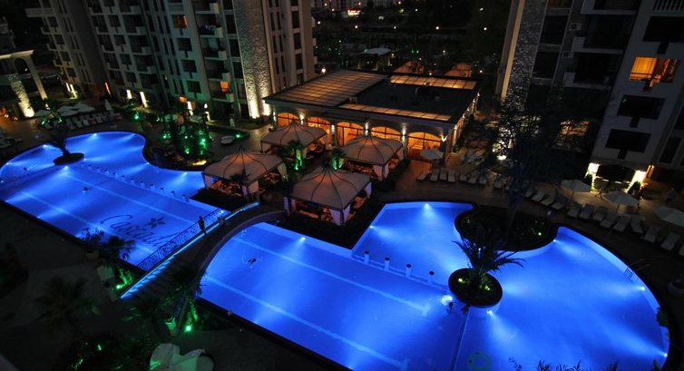 • душ/ванна • кондиціонер • телевізор • фен • пральна машина (тільки в апартаментах) • холодильник • Wi-Fi Територія та послуги: • 8 басейнів • відкритий басейн із солоною водою • 2 міні-аквапарки • головний ресторан • ресторан a`la carte • бар • парковка, що охороняється • послуги лікаря (за запитом, платно) • пральня • обмін валюти • камера зберігання на ресепшені • праска на ресепшені (за запитом) • оренда автомобілів Розваги та спорт: • фітнес центр • волейбольний майданчик • тенісний корт • настільний теніс • більярд • SPA-центр • масаж • джакузі • сауна • хаммам Для дітей: • 8 плавальних басейнів з дитячими секціями • 2 міні-аквапарки • 4 дитячі ігрові майданчики • анімаційні програми Живлення: • BB – сніданок (за меню) • HB - сніданок та вечеря (за меню) • RO – без живлення Пляж: Муніципальний піщаний пляж розташований за 500 м від готелю. Пляжні рушники не надаються.