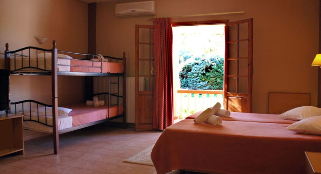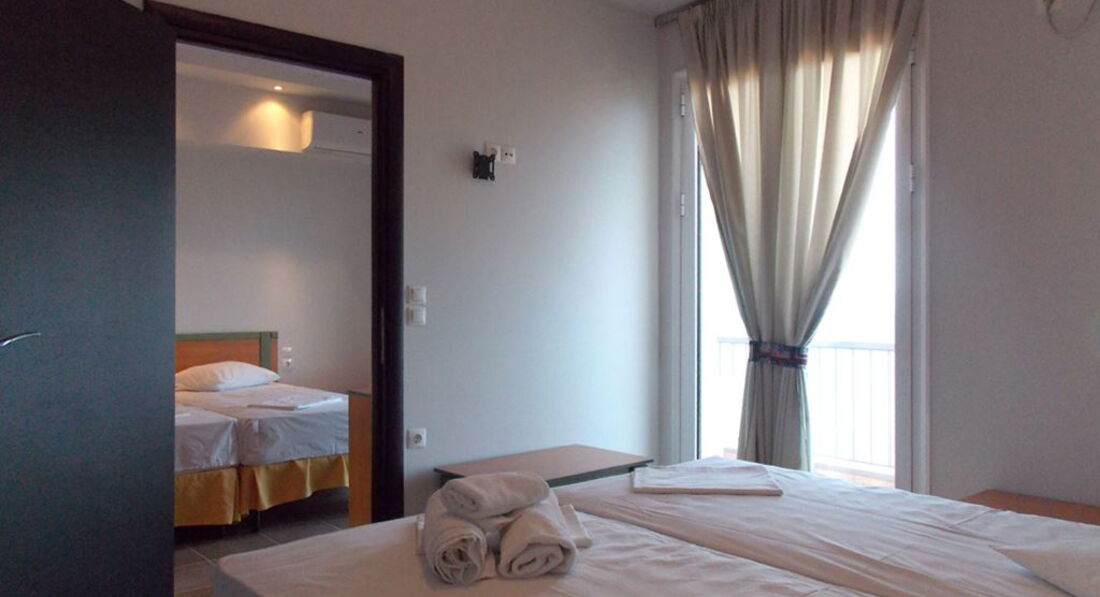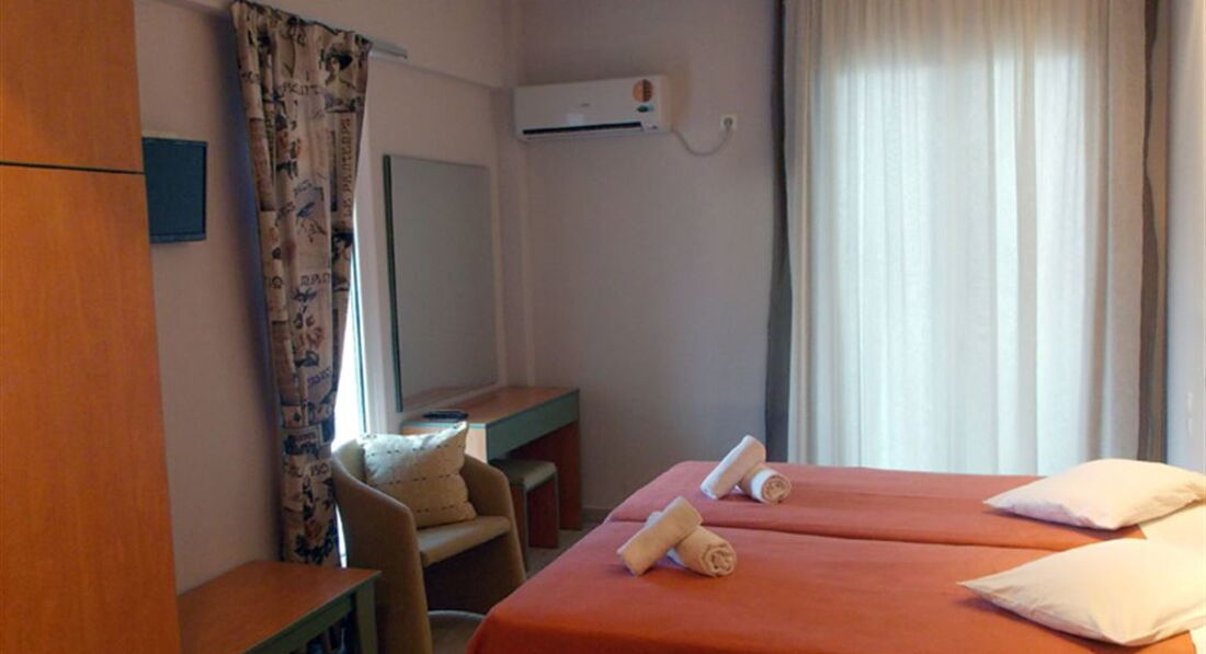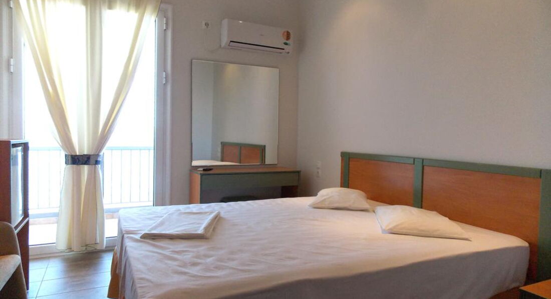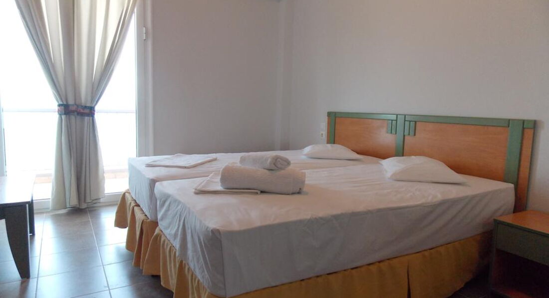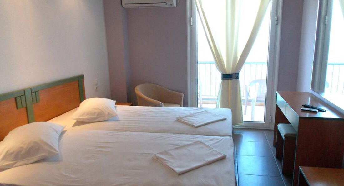 Типи номерів: standard room SV (вид на море, осн. ліжко - 2 односпальні (двоспальне за запитом, макс. 2 чол., 18 м2). standard room GV (вид на сад, осн. ліжко – 2 односпальні (двоспальне за запитом, макс. 2 чол., 18 м2). standard room quadruple SV (вид на море, спальня та вітальня з дверима, осн. ліжко – 2 односпальні, дод. – 2 односпальні, макс. 4 чол., 30 м2). standard room triple use SV (вид на море, осн. ліжко – 2 односпальні, дод. – розкладне, макс. 3+1 чол., 23 м2). studio (осн. ліжко – 2 односпальні, дод. – двоярусне, кухонний куточок, макс. 3+1 чол., 30 м2).У номері: зміна білизни: 2 рази на тиждень кондиціонер: індивідуальний безкоштовно зміна рушників: 4 рази на тиждень підлога: керамічна плитка прибирання номера: 6 разів на тиждень фен: є балкон ТБ: супутникове душ Інтернет: Wi-Fi, безкоштовно міні холодильник