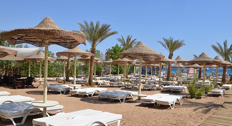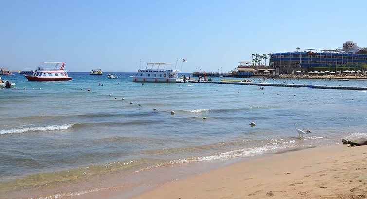 Пляж маленький, на территории имеется пантон, который сдан в аренду отелем возле которого просто толпятся лодки, катера и батискафы. Через пляж отеля отдыхающие других отелей проходят к ним кататься, соответственно плаваешь в бензине. Арабы-лодочники мчат так что могут не заметить, что рядом плавают люди. До буйков можно спокойно дойти, а не доплыть. Кораллы не ограждены, как у др. отелей можно поранить ноги или наступить на ежика, но плавает много рыбок. Есть конечно места где спокойно можно плавать и пройтись (на пляжах других отелей, но других не пускают), но кто не знает где кораллы (они возле пантонна) тот может пораниться.