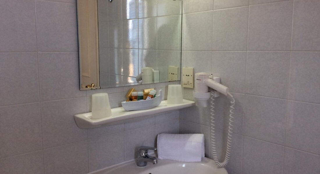 • ванна кімната з душовою кабіною, феном та туалетним приладдям.