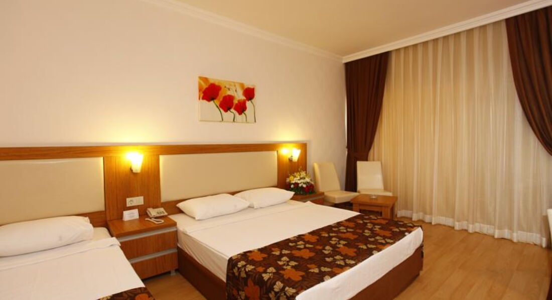 Спустя год решил написать отзыв.Были в Турции в первый раз так что сравнивать не с чем.Приехали в отель около 16.00 заселили моментально на +1 этаж с видом на море,хотя в ваучере был эконом, попали сразу на мороженое и лепешки и снеки в баре.В номере чисто 2 набора полотенец белоснежных,ватные палочки диски,мыло,гелт для душа шампунь,пилочка для ногтей,набор ниток с иголкой пакеты для полотенец,сейф платный 2 евро сутки,но не воруют..Телек 2 русскоязычных канала,включат для разнообразия ,интеренет в номере 2 евро