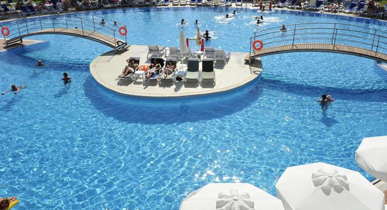 Отдыхали компанией ( 4 подруги). В отель приехали поздно вечером, быстро получили номера, пошли изучать отель. Территория отеля не большая, довольно уютная, большой бассейн и несколько горок, подземный переход к морю - идти минуты 2. Лежаков как на пляже, так и у бассейна много, поэтому хватало всем. Питание шикарное:мясо, рыба всех возможных видов, сладости, разнообразные салаты и т.д., единственный минус - не хватало фруктов.