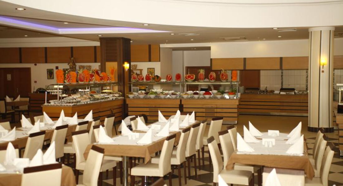 Головний ресторан "Pamfilya Restaurant" - вміщує до 650 осіб. Ресторан Ottoman – турецький ресторан, Akdeniz – рибний ресторан (19:00-21:00), необхідна попередня резервація. Одне відвідування за весь час проживання безкоштовне. Бари: бар на пляжі (10:00-17:00), снек-бар: час чаю (16:00-17:00) - шведський стіл, лобі-бар (10:00-00:00), бар біля басейну (10:00-00:00), диско-бар (00:00-04:00) – платно, боулінг-бар (10:00-17:00).