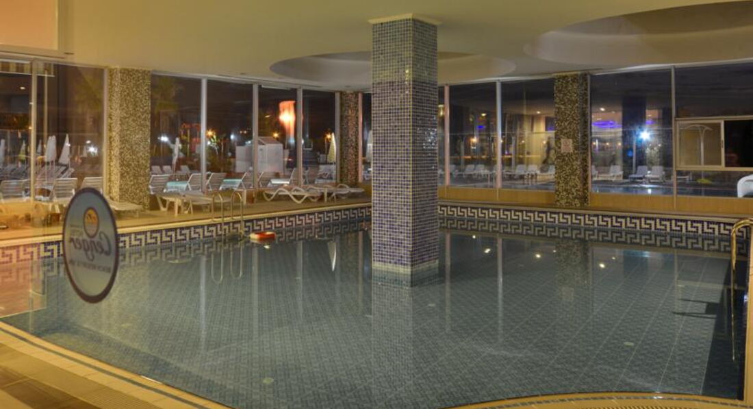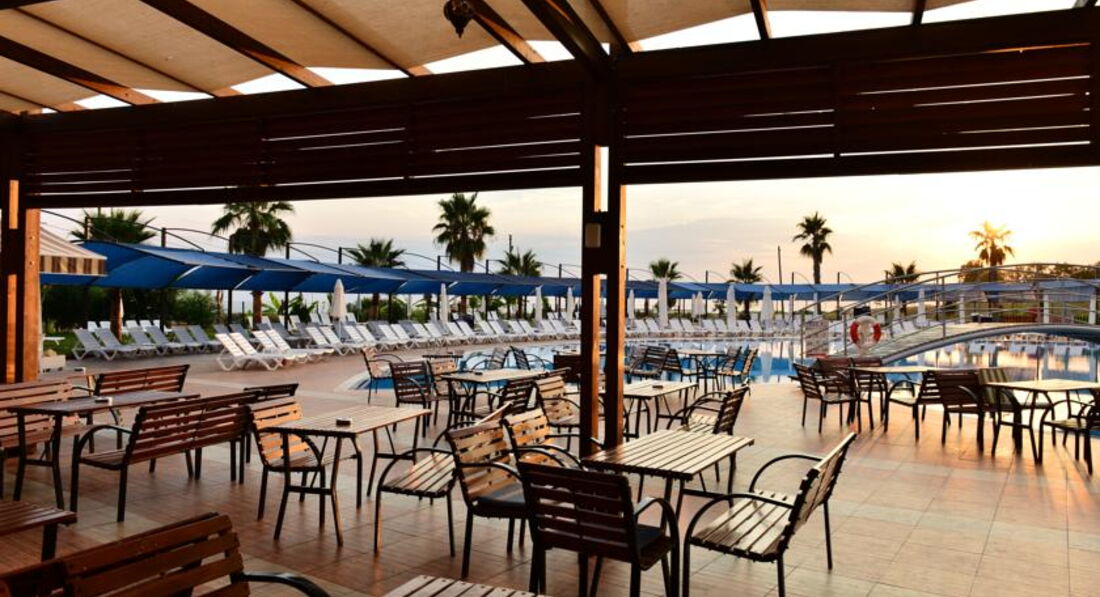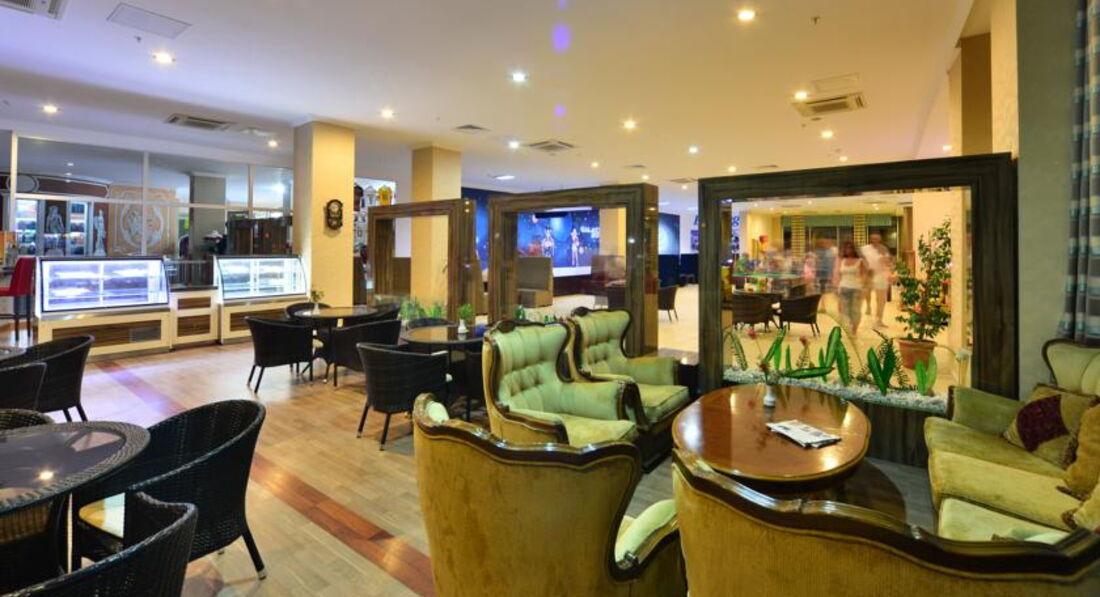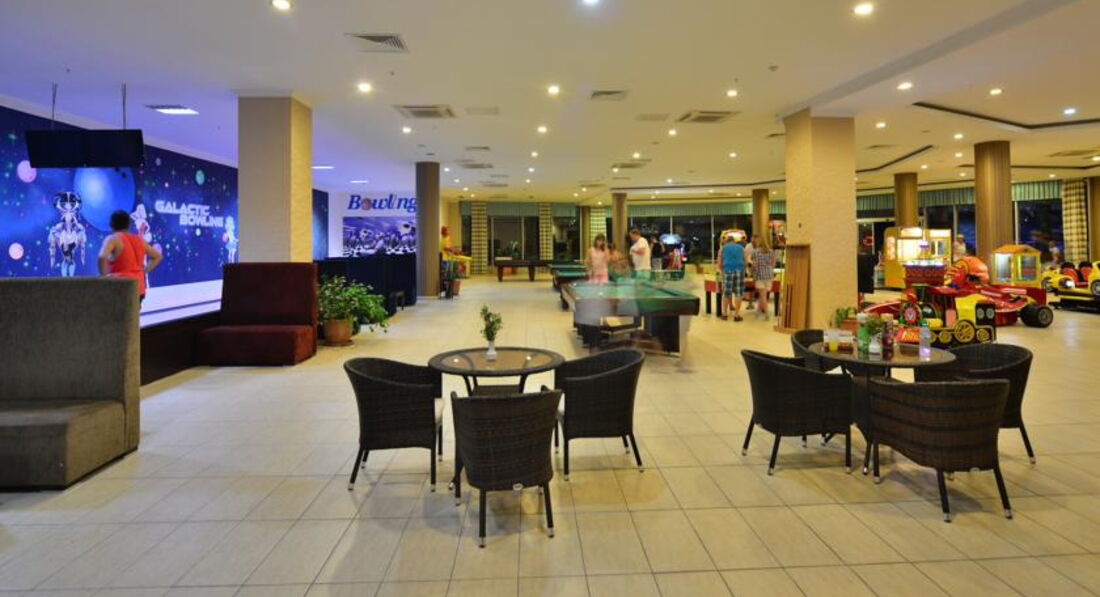Решили из холодной осени попасть в лето.Выбирали из многих отелей и остановились на этом.Не пожалели.....Переживали ,что до пляжа нужно идти,но оказалось -не напрягало,даже полезно после такой кухни.Теперь даже жалеем,что не ходили с пляжа к бассейну,где было мороженое,пончики,аэробика.Ходили в последние дни и очень нравилось.На пляже в баре было пиво ,вино,айран,чай,кофе горячий шоколад,а с 12 можно поесть,были даже супчики.А вот лепёшки-это беда для фигуры,такая вкуснятина.....На завтрак ходили часов в 8,много всего,но яичница была холодная,не знаю,во сколько её жарили,но задолго до нашего прихода,а жаль......Из фруктов были арбузы,дыни,гранаты,мандарины,яблоки.На ужин была супер рыба на гриле ,ну конечно и мясо и печень и много всего,но рыба..........Питание отличное.Анимация не понравилась,очень слабенькая.....Магазинчики есть не далеко от отеля,можно вечером прогуляться.Жили на 4 этаже,но лифты очень медленные,ждать долго.Но нам всё очень понравилось,очень не хотелось уезжать,да ещё повезло,нам перенесли рейс и до 23 час,мы находились в номере бесплатно.Единственное но ,которое не коснулось нас-перед отелем построен ещё отель,при нас он был ещё не открыт,но с его открытием не знаю,как это отразится на отеле.