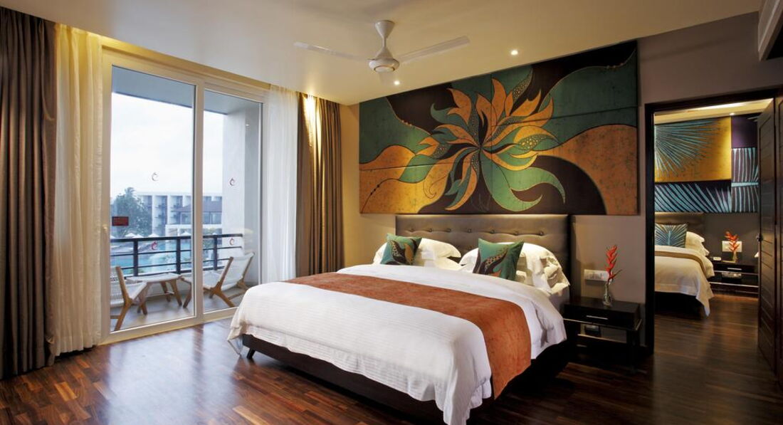 22 Deluxe Ocean View (32-34 м2, 13 номерів з ліжками king-size - макс. 3 або 2 +1 чол., 9 номерів з 2 ліжками double - макс. 2 +2 чол.). Номери з еклектичним дизайном, що створює відчуття простору. Вид на пляж і океан.