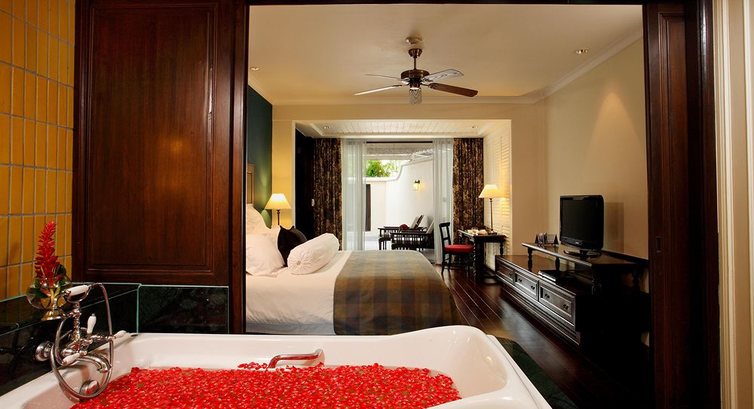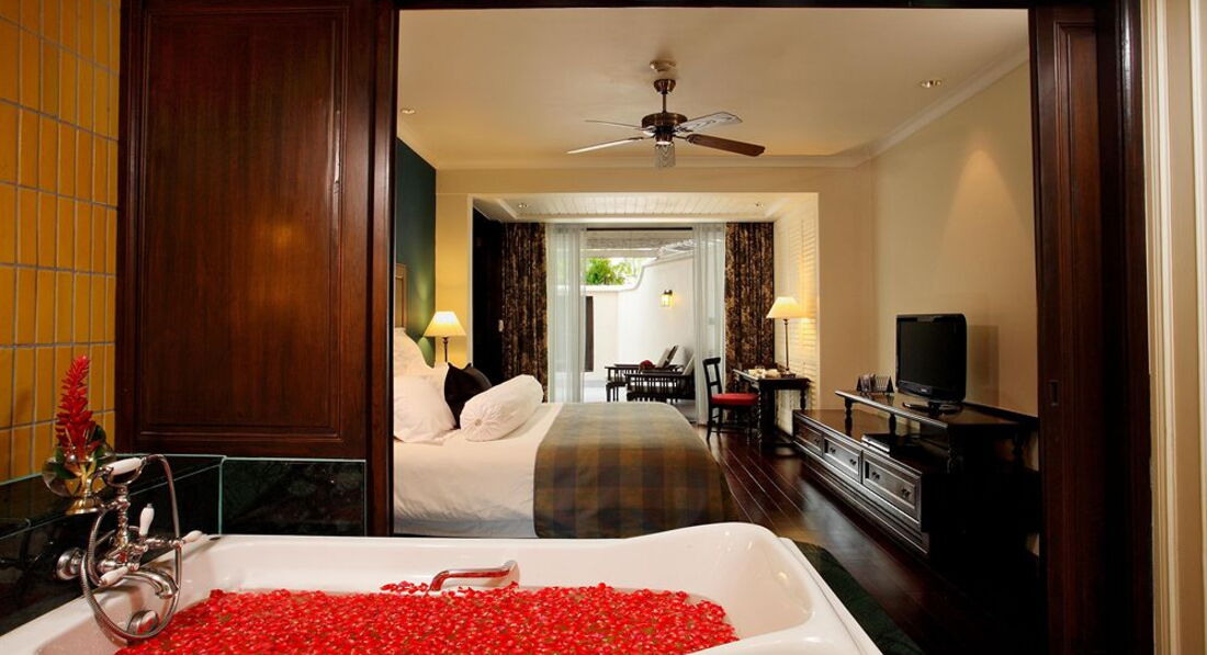 22 Deluxe Pool Suite (спальня з вітальнею, двоспальне ліжко та софа, невеликий басейн 2х4х1 м, макс. 2+2 чол., заг. пл. 60 м2);