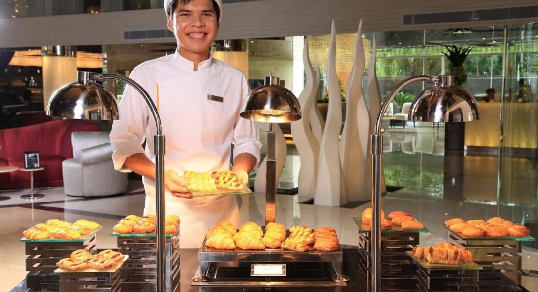 Ресторан. Располагается на первом этаже. Есть большой аквариум с морскими рыбами. Если успеть занять один из трех столиков у аквариума, то можно есть омлет разглядывая метровых акул, а они в ответ будут разглядывать вас.. В меню входит стандартный набор блюд европейского завтрака, тайской и китайской кухни. Голодными не останетесь, но и в Арагви (элитный ресторан г.Москвы) не побываете. Забавлял способ перемещения в тарелку из сервировочного блюда помидорчиков «черри» и огурцов, нарезаных до размеров виноградин. Для этого предусмотрены щипчики, хотя правильнее их назвать - «пинцетиками». И еще учитывайте, что если вы пришли в ресторан к концу завтрака, то требовать разносолов не получится. Вполне возможно, что определенное блюдо может закончится. Если захотите пообедать, то можете подняться на крышу. Там есть ресторан. А также фитнес-центр и бассейн. Имейте ввиду, что в ресторанный счет вам добавят сумму за обслуживание, о которой в рекламном проспекте в лобби ни слова…