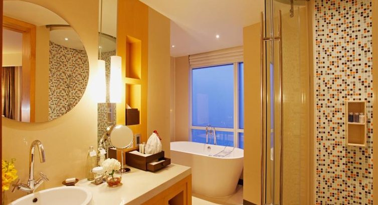 Прекраснейший отель, полностью соответствует своей звездности 4*. Бронировали напрямую у отеля 1 ночь, жили в де люкс номере с панорамным окном на Бангкок. Из окон виден торговый центр Сиам Парагон, рядом находится еще огромное кол-во торговых центров. Рядом станция метро. Номер огромный, шикарная ванная комната, отличный бассейн на 23 этаже, обалденный ресторан на 55 этаже с панорамным видом. Все номера начинаются с 23 этажа. Мы жили на 41. У каждого по электронному ключу. На ресепшен нет русскоговорящих. Великолепный сервис. В номерах: все банные принадлежности, халат, тапочки, даже весы, есть ванна и есть душевая кабина. Очень интересные номера, из ванной комнаты огромное понарамное окно в комнату, которое закрывается стеклянными дверцами и со стороны комнаты, можно задернуть шторками. В номере чаник, кофе, чай. все бесплатно. Есть мини бар-платный. Телевизор с кабельным телевидением, за дополнительную плату, можно посмотреть любой фильм. Депозит в отеле 2000 бат. От отеля до аэропорта, по платной скоростной дороге ровно 20 минут. У отеля такси до аэропорта 500 бат. Советую очень. если есть вопросы пишите tour-inna@mail.ru