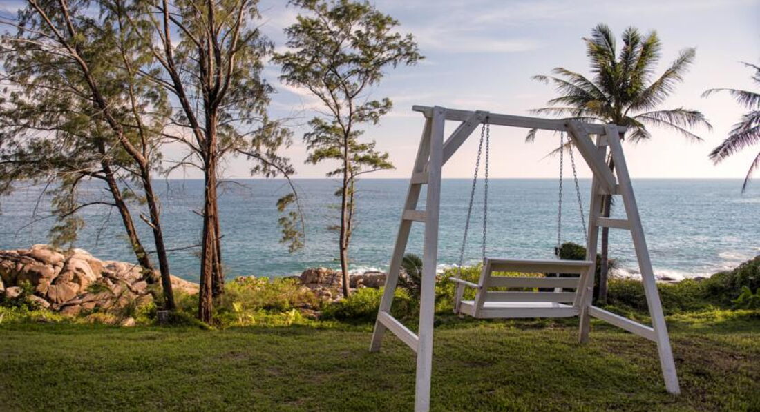 Выбрали этот отель совершенно случайно, на каком-то интуитивном уровне... когда увидели фото, какой вид открывается с ресторана отеля... Прочитали отзывы и поняли - наш выбор. очень хотелось красивой природы, уединения, отсутствия шума и запахов города. И все это мы получили на 100%. Даже отзывы про фитнес с подъемами не пугали. Тем более, что нам повезло с виллой. Выбрали, прочитав отзывы обычную виллу, нам дали № 402, в самом низу, рядом с Pool villas, до каменного побережья моря - 1 минута, рядом лужайка рядом с морем и качелей.. из окна вид на море...