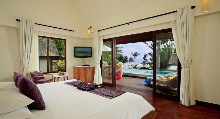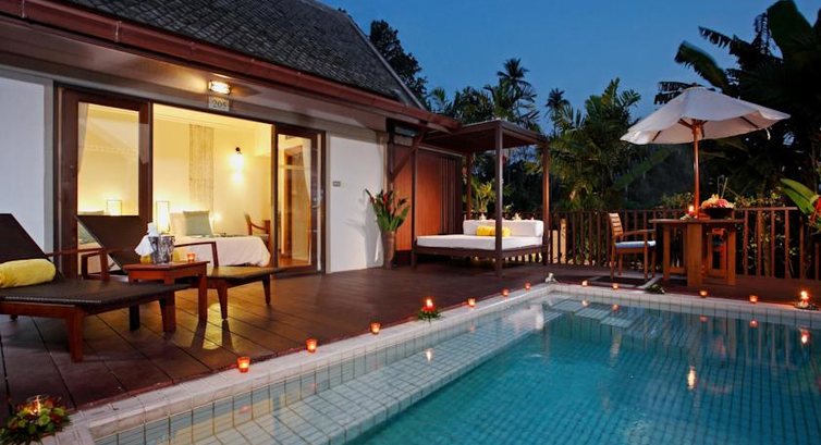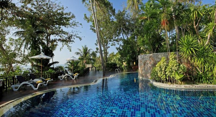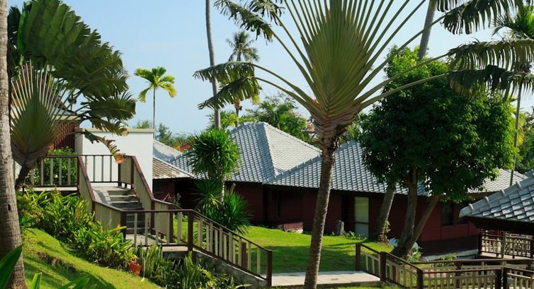 Готель складається з вілл у тайському стилі, які спускаються терасами схилом гірського масиву.