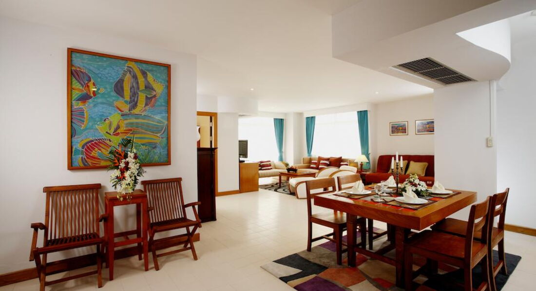 Отдыхали в апреле 2014 года семьей (2 взрослых, ребенок 6 лет и малыш 5 мес). Отель понравился прежде всего тем, что расположен действительно удачно по отношению к пляжу, ресторанчикам (кстати, нам приглянулся больше всего ресторан DOMO - обалденная кухня как тайская, так и русская, а какие там десерты просто супер, цены вполне демократичные), магазинчикам. Второе что впечатлило нас в этом отеле так это огромные номера с видом на море, со всем необходимым на кухне для приготовления завтрака (к примеру), и даже то, что мебель старовата, с сантехникой проблемы - нас это нисколько не огорчило, ведь не каждый раз получается отдохнуть в таких апартаментах. Уборку делали каждый день, постели белоснежные, мыльные принадлежности пополнялись ежедневно - кому все это интересно. Кстати, море с третьего этажа не видно, нас сначала туда заселили, потом за отдельную плату договорились на восьмой. Бассейн приличный, есть где детям покупаться и где взрослым понырять. Территория небольшая, но вся в зелени, ощущение, как будто в джунгли попал. Хотя весь Таиланд - это сплошные джунгли))). Можно пользоваться территорий другого отеля Centara - там в детском бассейне есть прикольные горки, нашему сыну понравилось.