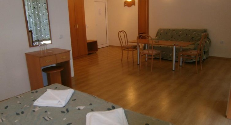 Отель семейный. небольшой.Все понравилось, хороший номер и сервис. До пляжа короткой дорогой 20 минут, меня не напрягало. Рядом магазины, кафе, рестораны, да и в самом отеле неплохо кормят. Собаки по ночам лают, но к отелю это не относится...Захотелось еще раз приехать в Кранево. Спасибо за гостеприимство!