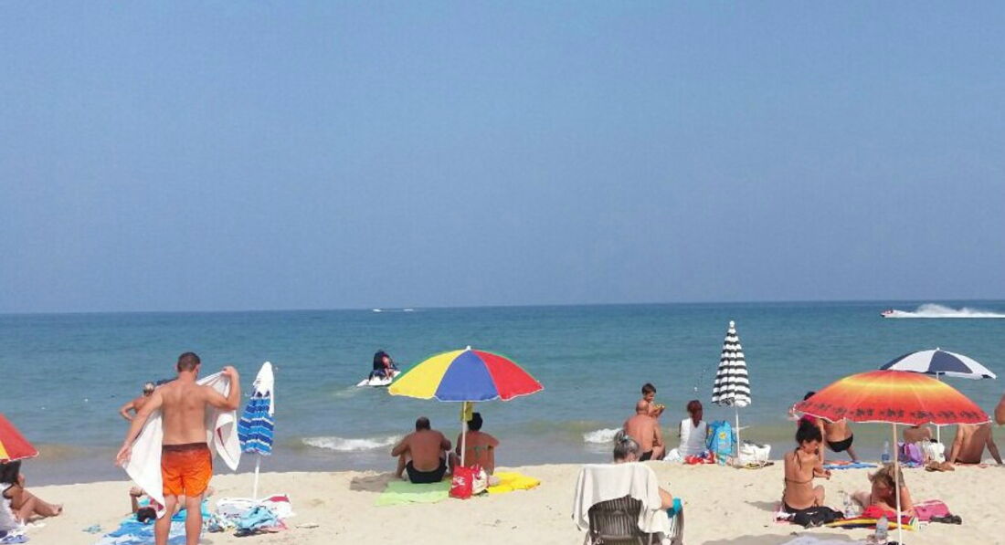 До моря 10-15 мин не спеша. Пляж бесплатный, есть зонты и лежаки (6 и 4 лева соответственно) и места для отдыха без необходимости платить.