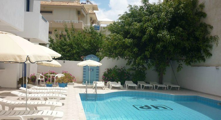 У готелю немає територія, є невеликий внутрішній дворик з басейном. Простий номерний фонд. У кроковій доступності центр м. Херсоніссос з магазинами, барами та кафе. Рекомендуємо для молоді та бюджетного сімейного відпочинку.