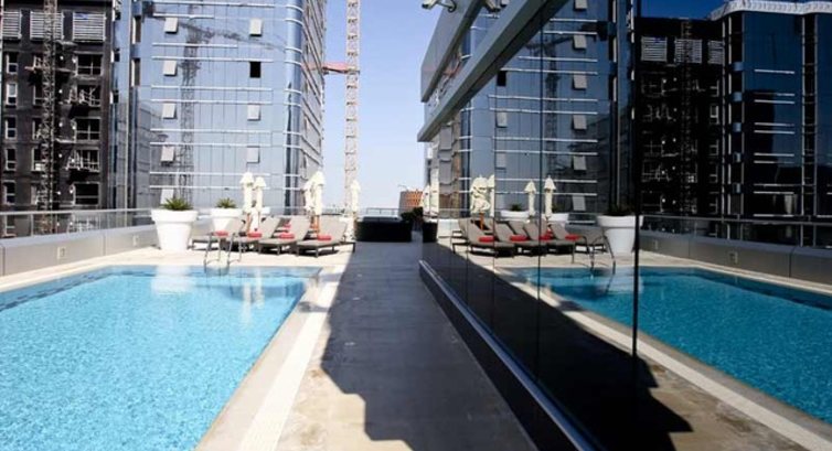 На верхнем этаже отеля есть небольшой бассейн, диваны и лежаки, можно загорать. Так же есть небольшой спортзал с тренажерами, душевые.