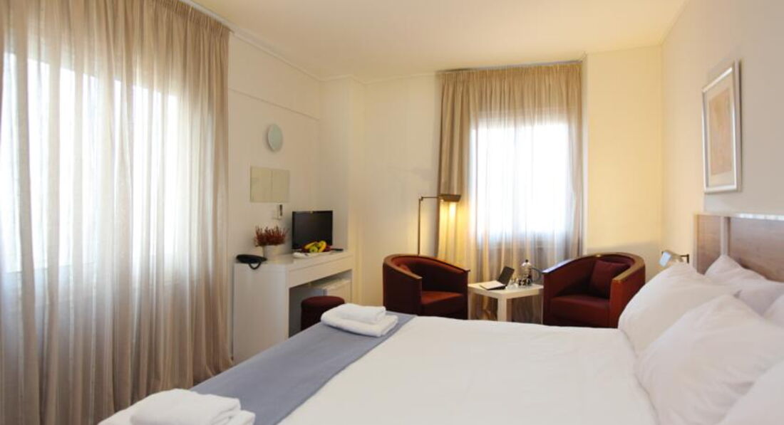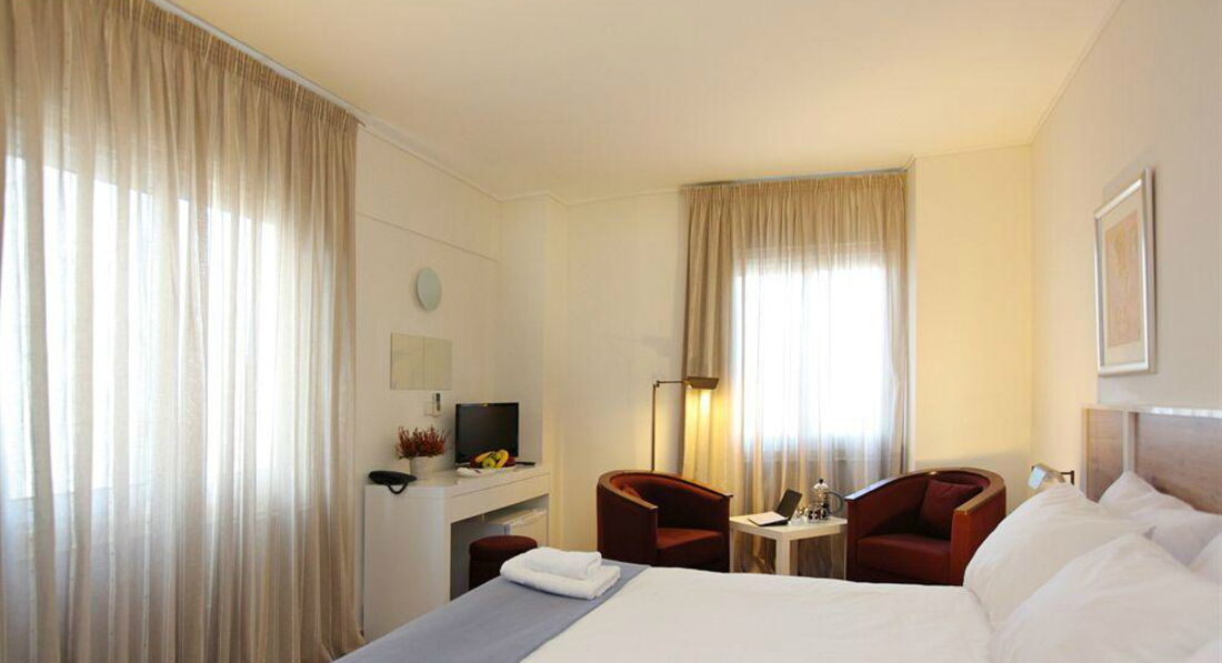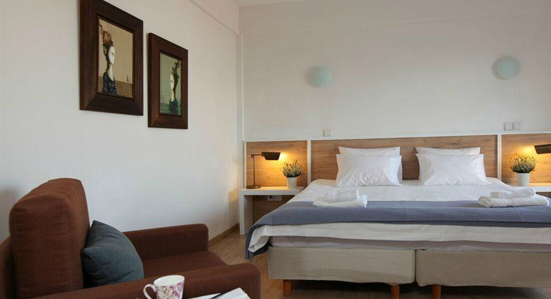 Standard Room (15–20 м2, макс. 3 чол., стандартний однокімнатний номер з двома двоспальними ліжками або одним односпальним, додаткове – односпальне ліжко, балкон або тераса (не у всіх номерах); також є традиційні номери (макс. 2 чол.) .) з одним двоспальним ліжком),