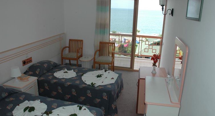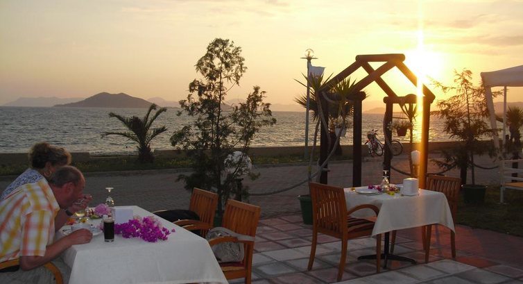 Отель понравился. Для бюджетного отдыха даже очень хорошо! Расположен на берегу моря ,через променад, из всех номеров море видно хотя бы в дали. Номера простые, но есть все необходимое, не обшарпанные, все работает, убирали нормально, полотенца меняли каждый день, хотя висит в номере объявление, что меняют раз в три дня. Постельное белье меняли дня через 3. ТV в номере есть, но русских каналов нет. Есть бесплатный wi-fi ,у нас в номере брал только на балконе, на ресепшене и территории отеля берет хорошо . Персонал по русски не говорит, все общение только на английском. Русских в отеле при нас не было, да и вообще, в этом регионе русских мало, отдыхают в основном немцы, англичане, турки. Персонал в отеле очень отзывчивый, на все просьбы реагируют сразу же. Отель маленький, поэтому всех помнят, приветствуют, за ужином только пару раз спросили номер комнаты, чтобы записать счет за напитки, а в дальнейшем уже помнили. Питание в отеле, у нас бало HB , разнообразия нет, но все вкусно и качественно, завтраки бедноваты, конечно, но мы всегда наедались. На ужин обычно один вид мясного,всегда очень вкусно, пару гарниров горячих, суп, салатов и закусок много (баклажаны в разных вариациях, фасоль, кабачки,перец и помидоры фаршированные, свежие огурцы,помидоры, зелень и т.д.) из фруктов всегда арбуз и дыня, еще виноград, персики, сливы. За наши 8 ужинов горячее всегда было разное, рыба один раз была. Учитывая , что заплатили мы 43 тыс. за двоих за 8 ночей в августе , претензий никаких! Пляж через променад, два лежака и зонтик стоят 15 лир( 7.5$),лежаки пластмассовые, не очень удобные, пляж, конечно ,не ахти, песок крупный серый с вкраплениями мелкой гальки ближе к морю, пляж убирают, но только крупный мусор, а окурки никто не убирает и их много! Есть душ и кабинки для переодевания, но их не много.Народу , даже в августе, не очень много, это приятно. Море в Чалыше -практически всегда после 12 часов начинаются волны, но они не огромные, купаться вполне хорошо. Зато температура воды, наверное, градусов 29-30, очень теплое. Вдоль променада множество различных кафе, цены дешевле, чем в Европе, обслуживание хорошее. Резюме: отель хорош для бюджетного отдыха, для не особо притязательных туристов, для тех кто не любит олл инклюзив, большие отели с анимацией, с кучей соотечественников, а для туристов , которые предпочитают тихие , уютные отельчики, с посещением кафешек, баров, с прогулками по набережной по вечерам, которые любят брать в аренду машину и кататься по красивым местам, пляжам, которых в этом регионе достаточно много .