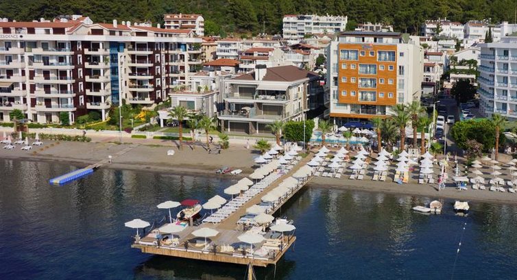 Отель, в который хочется вернуться. Большое спасибо менеджменту отеля и всему персоналу за чудесный отдых. Отель небольшой, очень уютный. Чудесный пирс и пляж, хорошо организована зона бара у бассейна, чтобы отдохнуть и расслабиться. Вкусная еда в ресторане отеля, качественные напитки, вкуснейшие десерты. Но самое главное достоинство отеля - это персонал. Весь персонал отеля внимателен и дружелюбен ко всем туристам. Менеджеры, работники ресторана и бара, аниматор Оззи и другие делали все возможное, чтобы все гости чувствовали себя хорошо. Отель ориентирован на туристов старше 16 лет, поэтому основная масса отдыхающих это пары средних лет, были и молодые пары, очень много европейцев и очень многие из них отдыхают в этом отеле повторно и очень довольны. Персонал отеля одинаково приветлив ко всем отдыхающих и не чувствуется разницы в отношении к европейским туристам и русскоязычным, что очень приятно. Рекомендую этот отель для спокойного и приятного отдыха. Расположение отеля просто идеальное, между Мармарисом и Ичмелером. Можно погулять или совершить пробежку по набережной в обе стороны. Для тех, кому нужна ночная жизнь Мармариса - 7-10 минут на долмуше или такси и и вы в центре Барстрит, можно и пешком - прогулка займёт около 40 минут. При этом отель расположен в спокойном месте с хорошим пляжем, где вы можете спокойно отдыхать. Осталось чувство огромной благодарности всему персоналу отеля.