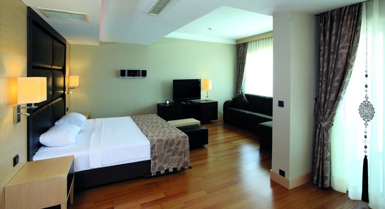 Отдыхали в отеле с 5 по 11 июля 2017 года.Нашли по отзывам на сайте.Поэтому хочу поблагодарить всех отдыхающих,которые не ленятся писать отзывы об отелях!Следую их примеру,т.к.и мой отзыв может кому-то помочь при выборе места отдыха.Отель оказался еще лучше,чем на фотографиях.От аэропорта 96 км,примерно 1ч 30 мин.Заселили нас за 2 минуты,очень приветливый красавчик на ресепшене все объяснил на английском.Сумки донесли до номера.Номер у нас был хороший,стильный интерьер,все исправно работало,бар был заполнен.Персонал отеля очень приветливый!!!Русских туристов до этого лета было очень мало,поэтому персонал по-русски говорит 10 фраз.Но поскольку число русских резко увеличилось,думаю,что уже следующим летом на ресепшене появятся русскоговорящие.Кормили хорошо,разнообразно,много мяса и рыбы.Мороженое каждый день.Помимо завтрака,обеда и ужина - в течение дня постоянно предлагали различные виды перекуса.Отдельная тема - пляж.Великолепный!Мелкая галька с песком,удобный вход в море,для не умеющих плавать - длинная полоса глубиной 1.2 м-1.5 м. Отдыхали несколько раз в Турции,но такой близости пляжа от отеля еще не встречали - 3 шага! Собственный пирс,мы загорали только на нем - открывается великолепный вид на побережье!Прогулочная полоса - несколько км,вечером прекрасная возможность погулять вдоль моря или на противоположной стороне по улицам с магазинами.В отеле отдыхали в основном семейные пары.Для детей развлечений нет,только маленький бассейн.В общем,всем,кто любит комфортный отдых,настоятельно рекомендую этот отель!НЕ пожалеете!Да,забыла:по вечерам выступают танцевальные коллективы,ансамбли,вокалисты.Отдельное спасибо и огромный привет всем официантам и барменам!Все классные ребята и большие труженики!!! Наталья
