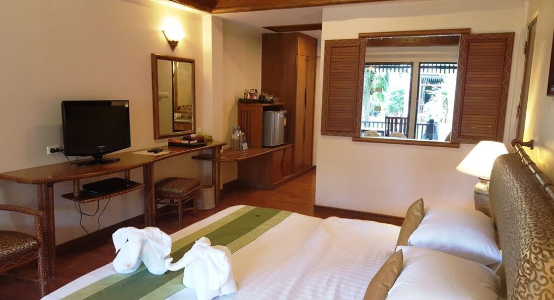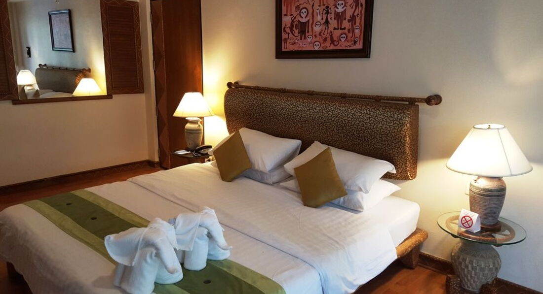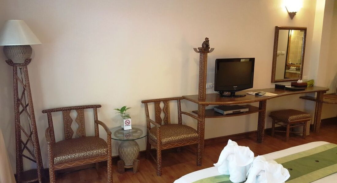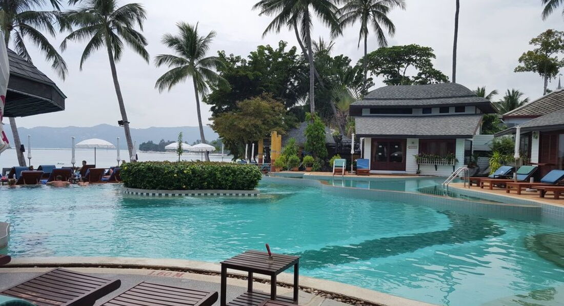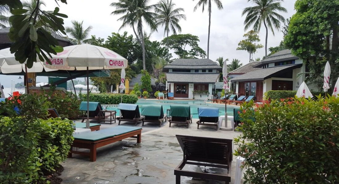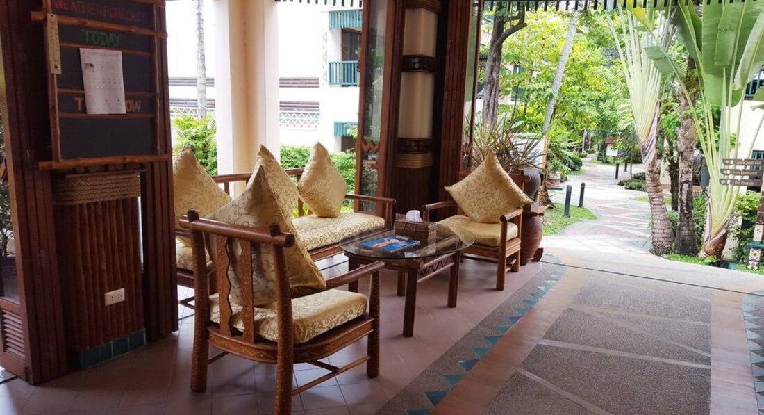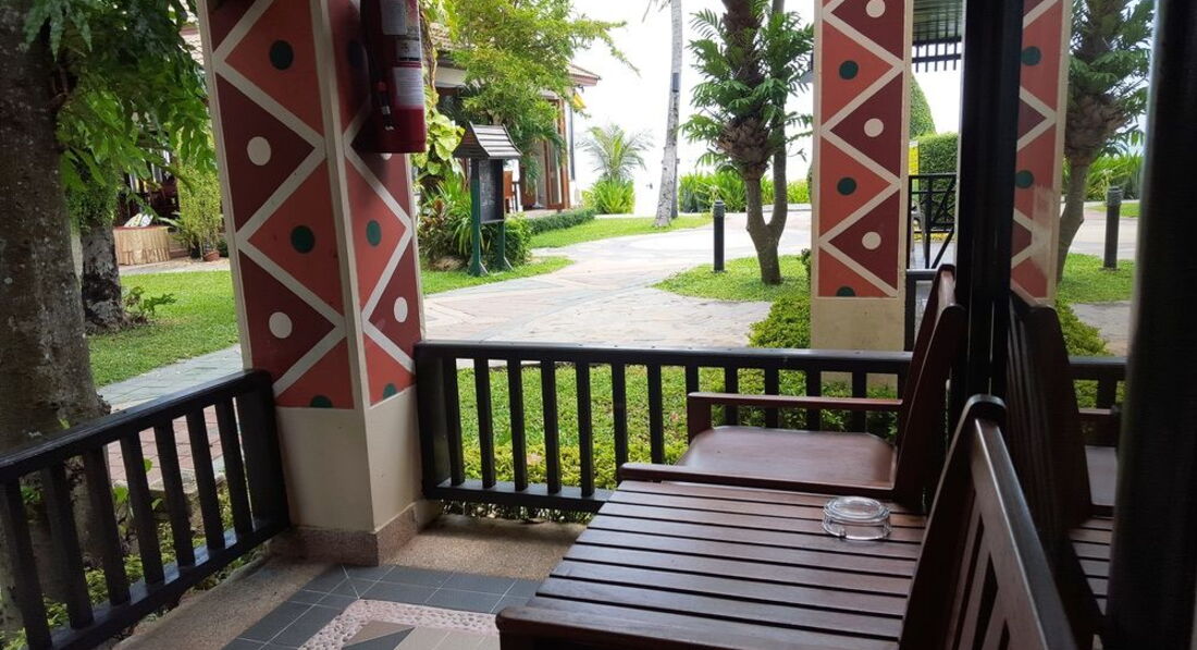 Отдыхали 2 парами. Брали бунгало. Общая дверь внутри. Удобно и если дети взрослые. Отель находится на краю пляжа. При отлив можно дойти до ближайшего островка. Завтраки хорошие. Терраса с видом на море. Мы были на Рождество. Несколько дней море штормило, купаться было опасно. Рядом есть кафе, массаж, 7/11, интернет кафе. Недорого доехать до центра. Рынка, магазинов. Сам отель очень зеленый.
