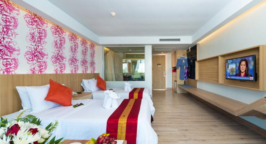 Согласен с Анной в приведенном за август отзыве. Не понравилось что в номере были вскрытые пакеты с тапками (которые при вскрытии включаются в стоимость номера. Заметил на второй день и стал переводить что там написано. Пришлось напрячься в общении с персоналом, но возражений со стороны персонала не было (в цену номера тапки не включили). Тапки кстати хорошего качества неплохие (я бы взял но не было моего размера 45-46). Не знал как пользоваться замком на входной двери. Когда нажимаешь кнопку изнутри и выходишь из номера, то замок снаружи ключом уже не открыть самому. В другом отеле было по другому. Сходил на рецепшен - там все поняли послали человека открыть. Сказал спасибо (косяк не мой). В номере есть минибар с ценником, но две бутылки по 1,5л воды ЭВИАН стоят отдельно на столе у балкона. Это вода платная- стоимость 110 бат каждая. В ценнике они есть. То что бесплатно это называется "комплиментом" (2 бутылки воды по 300 грам) и стоит над минибаром. Интернет на среднем уровне - почту проверить,сообщение написать, фотку по ватсапу, вайберу бросить. Актуально когда за окном целый день проливной дождь и другого инета нету ( у меня был дополнительно DTAC, 5Гб хватило с лихвой). Кондиционер встроенный поэтому направление воздуха (чтобы не на кровать) регулировал вручную. На балконе можно курить - мне был плюс, для соседей по балконам наверно минус (не жаловались). Шкафа нет - вместо него вешалка. Наверно это актуально когда высокая влажность-чтобы лучше проветривалось, но я привык оставлять номер чтобы все было убрано. Насчет завтраков особо сказать нечего - голодными не останетесь. Привычная еда присутствует (яйца, сосиски, картошка, хлеб,масло, варенье фрукты двух видов-арбуз/ананас). У отеля располагается рок-бар THE DUK. Заканчивает свою работу довольно поздно. Музыку слышно хорошо допоздна-одна и та же в течении 5 вечеров. Мне их вывеска подсвеченная и хорошо заметная, помогала найти отель (когда возвращался на байке вечером) и объяснять таксисту "где находится отель" проще.